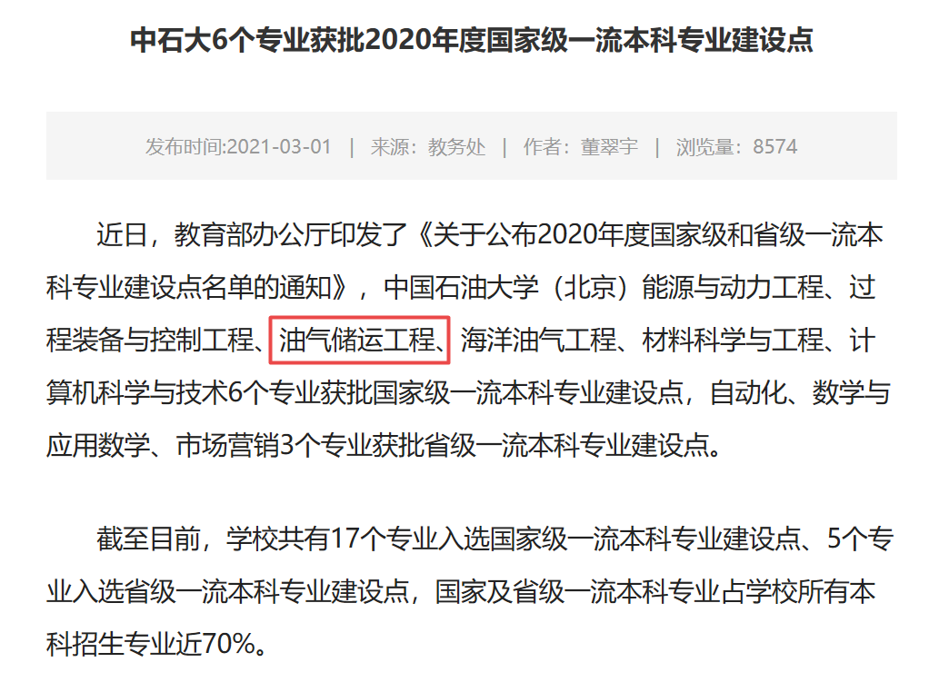 带动本校《输油管道设计与管理》、《输气管道设计与管理》等5门核心专业课及中国石油大学(华东)等6所石油类高校开展专业课程改革,强力支撑了本科“油气储运工程”专业获评国家级一流专业建设点、入选100个北京高校“重点建设一流专业”,促进了我校“石油与天然气工程”学科在国家第四轮学科评估中被评为A+学科进入国家一流学科建设行列。近6年以来,油气储运工程本科毕业生中的52%选择深造,就业学生中的50%以上选择到中西部油气领域行业工作,践行总书记提出的“把个人的理想追求融入到党和国家事业之中”的要求,落实了“为党育人、为国育才”。