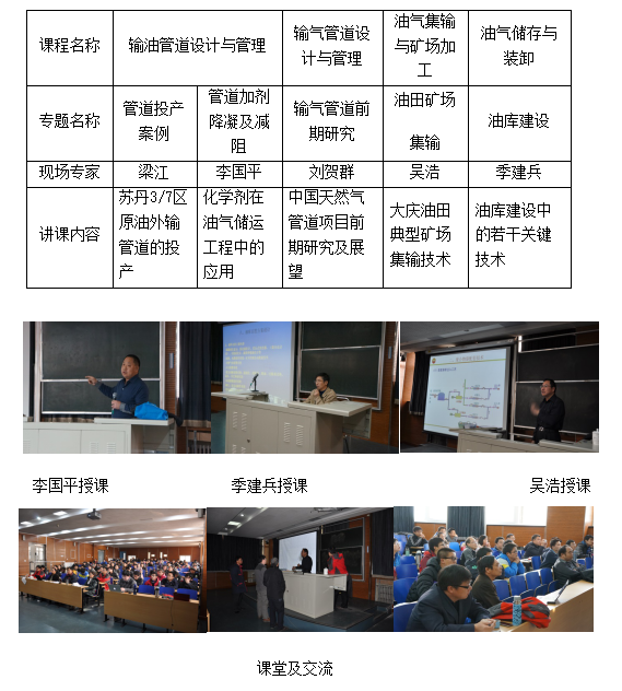 ⑦创设油气集输课外大讲堂,邀请企业知名专家授课,分享工程经验。