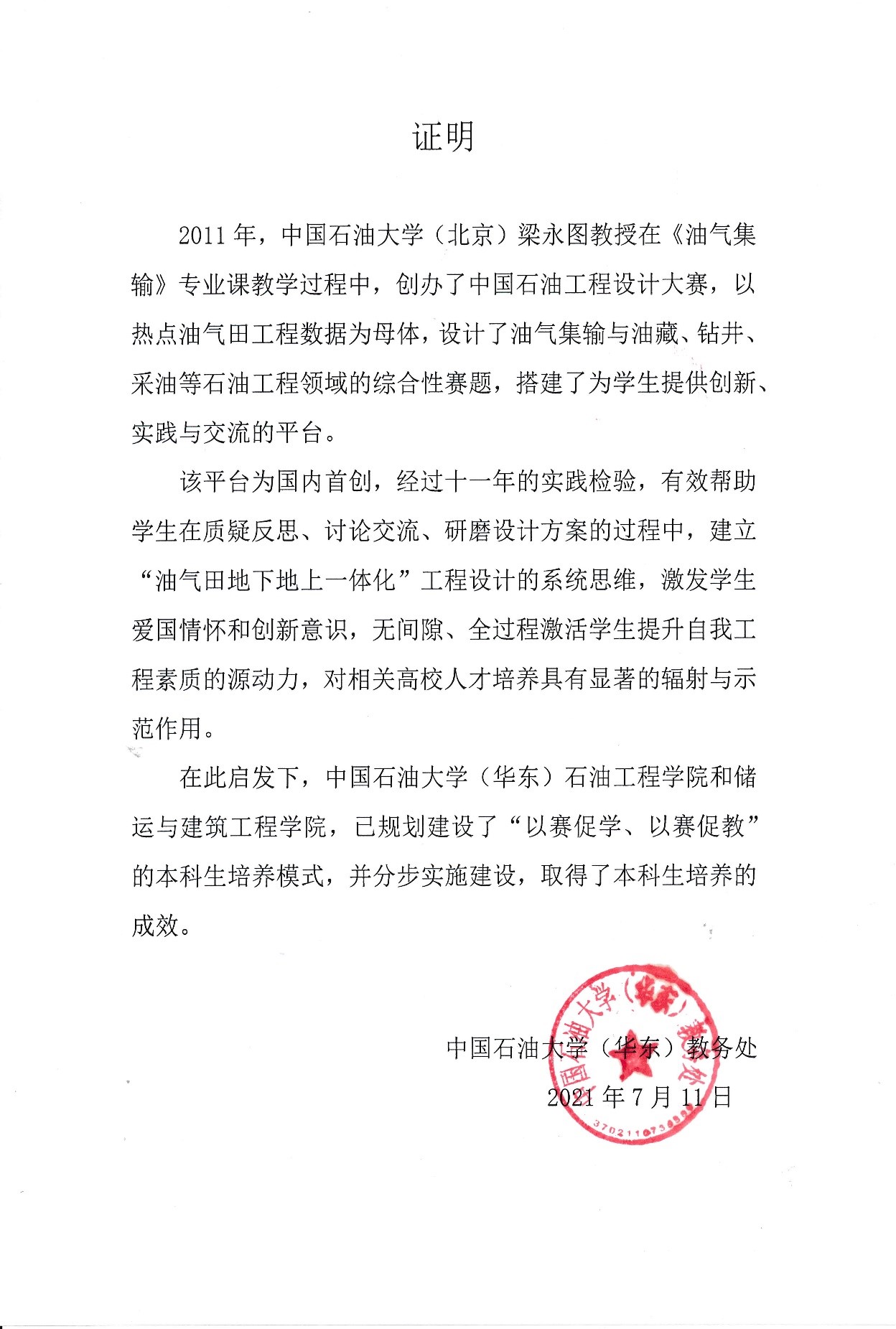 2011年梁永图教授创办“中国石油工程设计大赛”,由教育部、世界石油理事会中国国家委员会、中国石油学会、中国石油教育学会联合主办,三大石油公司赞助。