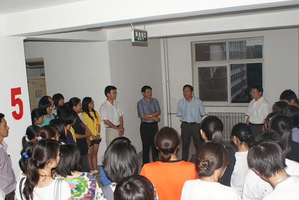 几位领导了解新生的报到和住宿情况,首先对新生们到来表示热烈地欢迎。随后,徐校长发表讲话,祝贺大家顺利地通过了高考,并感谢大家选择了中国石油大学(北京)。他还表示,希望新生能够尽快适应新环境,学会独立,完成高中到大学的转变,并提醒大家不要松懈,不能浪费在大学的学习时光。同时还询问新生及家长们是否有什么困难,并承诺对于这些问题学校一定尽快解决。最后院领导们提出了希望,希望同学们认真完成入学教育,顺利完成大学学业、愉快的度过大学时光。新生们一致感谢领导的关心和爱护,纷纷表示一定会满怀信心努力学习,全面提高自己的综合素质,不辜负学校学院领导老师的殷切希望。
