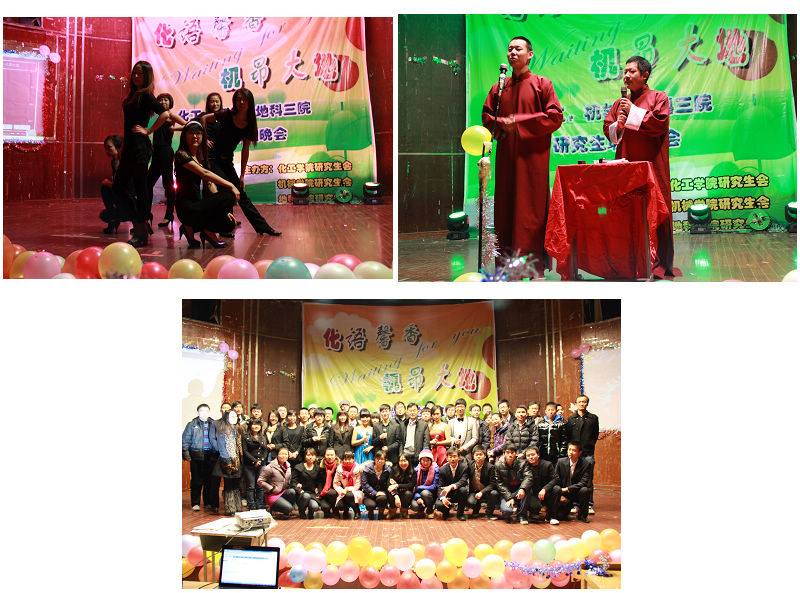 晚会开始,刘洛夫首先致辞,表示非常高兴能够参加三院研究生共同携手举办的晚会,并希望广大研究生能够在多面加强交流并预祝晚会成功。接着,晚会在一段精彩的街舞中拉开序幕,动感的音乐,流畅娴熟的舞蹈动作点燃起了同学们的热情。随后,熟悉动听的歌曲,精彩热辣的舞蹈赢得了全场观众的阵阵喝彩。中场互动游戏环节以及北化同学带来的相声表演,更是引得观众爆笑不断。