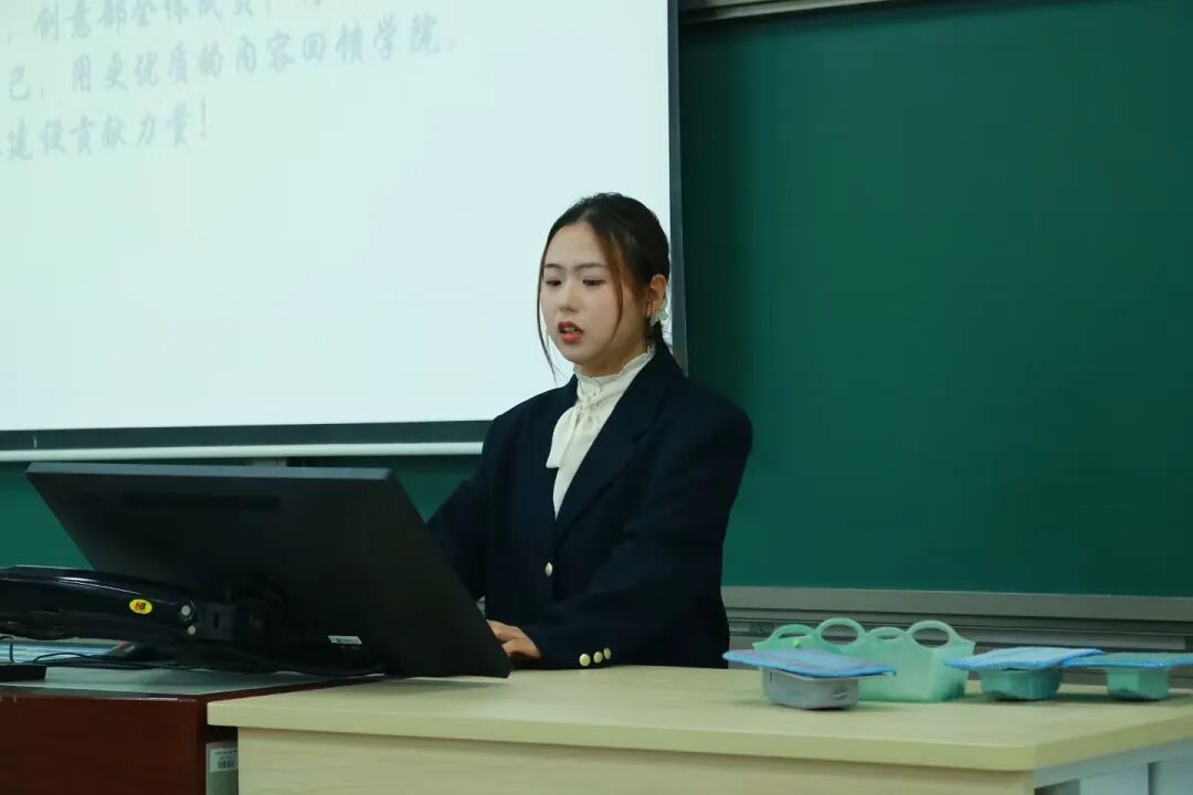 第六届“化成天下”工作室主席团成员宋梓郡在发言中表达了对工作室未来发展的美好期许。她感谢各位老师和同学的信任与支持,并表示新一届主席团将继承工作室优良传统,勇于创新,带领全体成员开创工作室新局面。