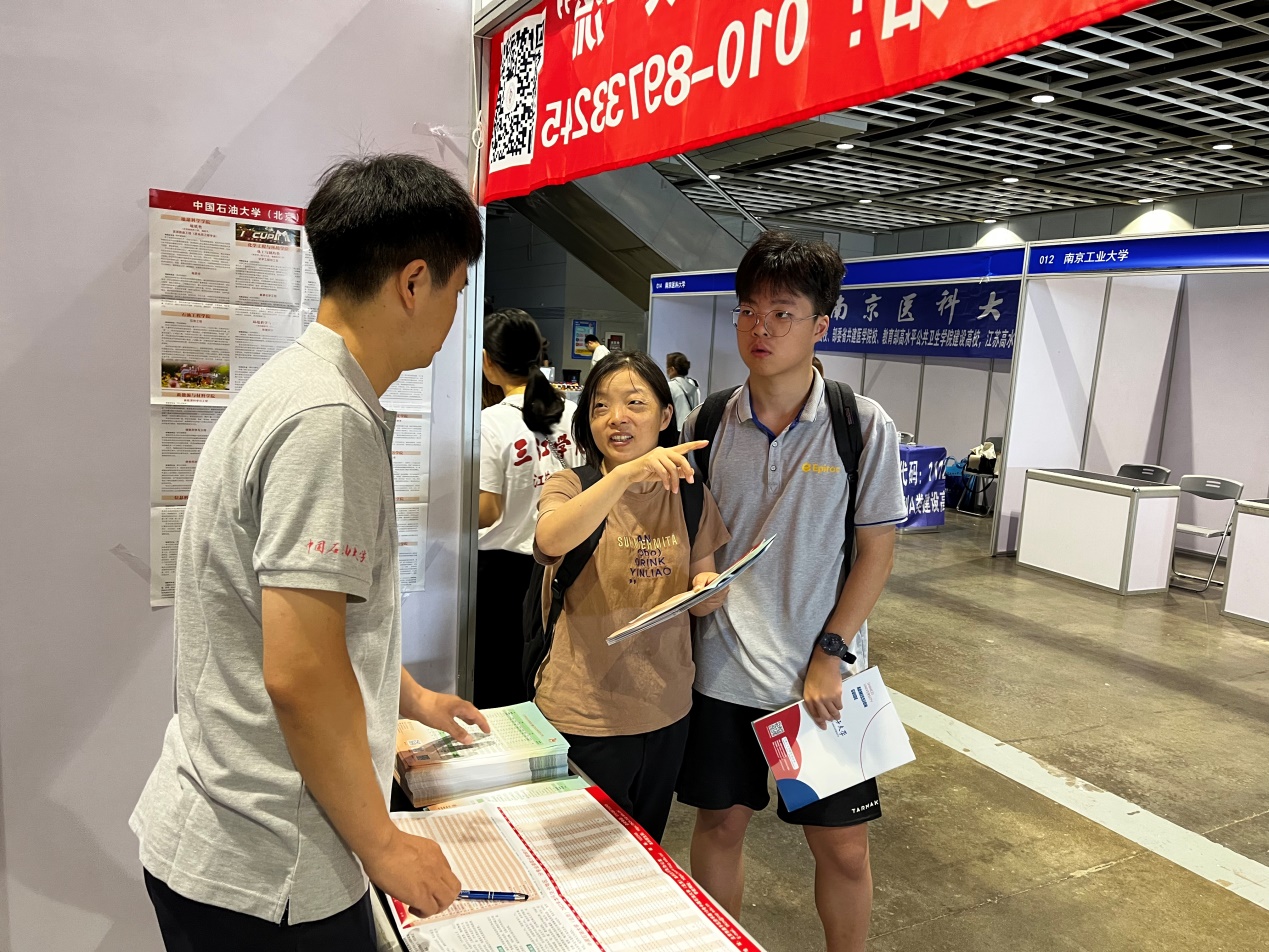 2023年6月27日,化工专业王晓辉和吴建勋两位教师赴江苏省南京市南京国际展览中心参加2023年第十二届江苏高考名校见面会暨志愿填报大会,开展本科招生宣传,吸引优质生源填报本校。此次本科招生宣传活动由中教互联(北京)教育咨询有限公司组织,南京大学、中国石油大学(北京)、北京航空航天大学、南京航空航天大学、中国农业大学、中国药科大学、南京理工大学、南京工业大学、河海大学、西南交通大学等100余所高校参加。此次招生宣传中,我院教师通过展位现场咨询和发放招生简章等向南京市广大高中毕业生和家长介绍了学校专业设置和育人特色,解答了学生和家长所关心的录取分数、专业分布、就业方向、升学率、就业率、转专业等事项,欢迎并鼓励达到学校调档位次的优秀同学选择中国石油大学(北京)。