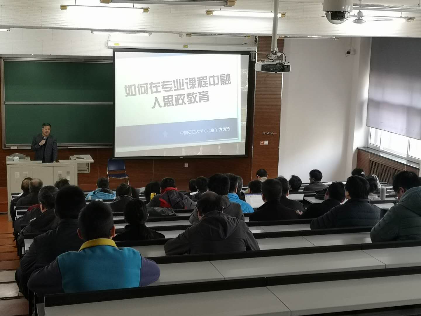 在报告中,方凤玲教授围绕“课程思政”,从“专业课也是育人课”及“专业课融入思政教育的路径”两个方面帮助青年教师实现知识传授与价值引领的有效结合。教师首先要用好课堂教学这个渠道,提升思想政治教育亲和力和针对性,将思想政治教育与专业课相融合,以满足学生成长发展需求和期待,帮助学生专业成才、精神成人。在专业课融入思政教育的路径上,方凤玲教授通过详实的案例向老师们介绍了三种方式,即在教学中目标中体现价值导向,要把握课程特点并与思政因素相结合;在教学内容中融入社会主义核心价值观,抓住专业课中能融入思政教育因素的相关知识点,做到将专业课内容与社会主义核心价值观和中华优秀传统文化的自然结合;多课堂融通立德树人,除课堂教学外,还可以利用各类实践活动及互联网相辅助。