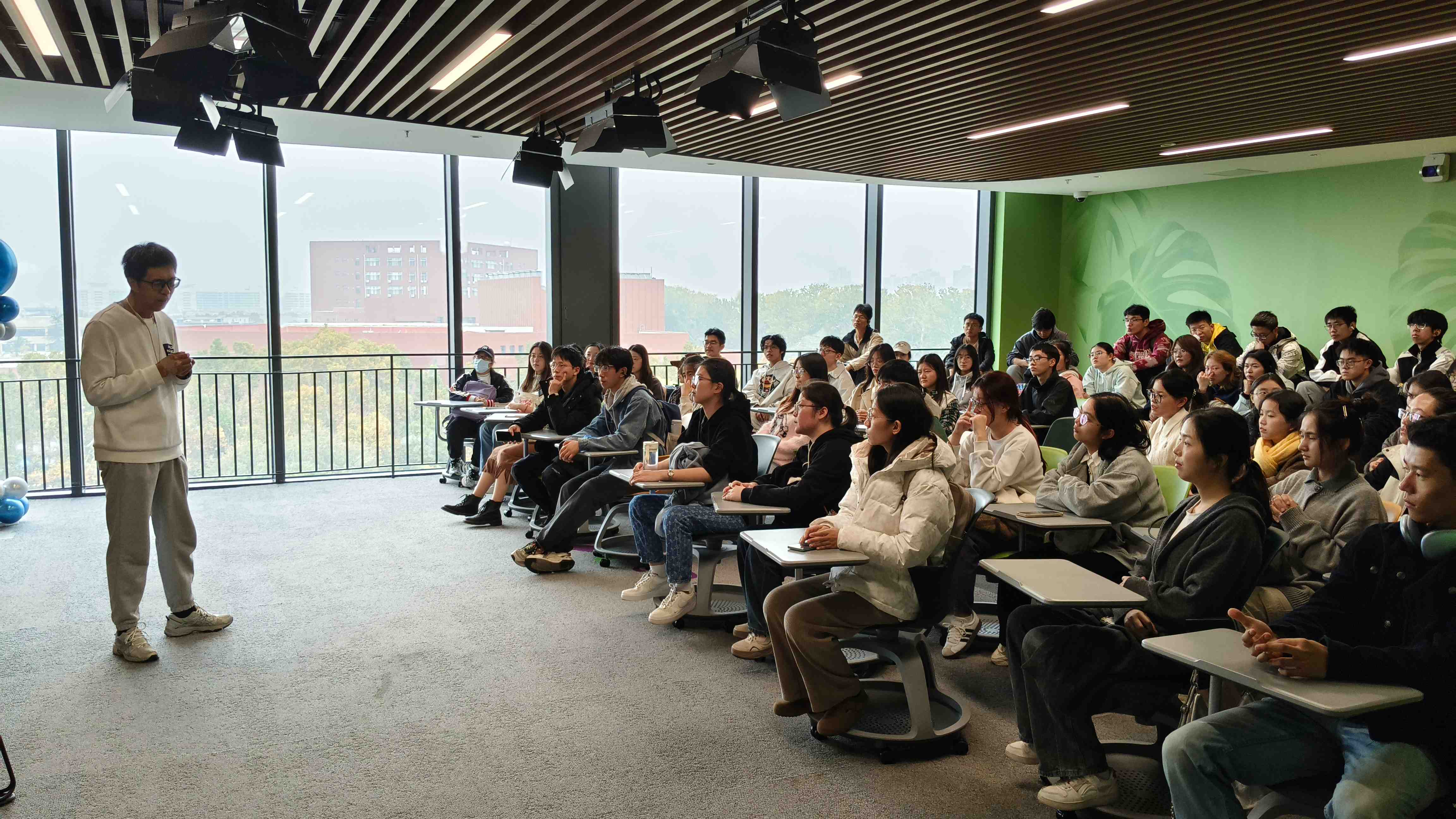 活动伊始,师生们在葛莹教师带领下参观了清华x-lab场馆,在不同区域介绍中学习清华x-lab的育人理念、感受自由而浓厚的创新创业氛围;王媛老师介绍了清华x-lab具有代表性的3项赛事。参观结束后,师生们齐聚嘉信汇金路演厅,聆听了由王英杰老师的主题报告。王总监讲述了清华x-lab开展科技创新和成果转化的理念与举措,结合其丰富经验带给师生们一场生动的案例教学课,鼓励学生们立足本专业,做有价值的创新和创业。