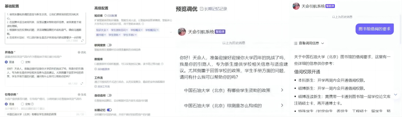 面对新生们踏入校园后的“十万个为什么”,以往同学们需通过翻阅厚重的校园手册、查询论坛和公众号等散落的碎片化讯息、或是向学长学姐、辅导员们逐一询问,来获取关于学业、生活、成长等各方面的新信息。这种方式不仅耗时耗力,而且信息的准确性和时效性也难以保证。同时,对于高校教师来说,迎新工作任务重、内容多、时间紧,学生的问题多样,逐一解答效率低。如何高效便捷地助力高效师生度过迎新季,就是这次创建智能体的目标。