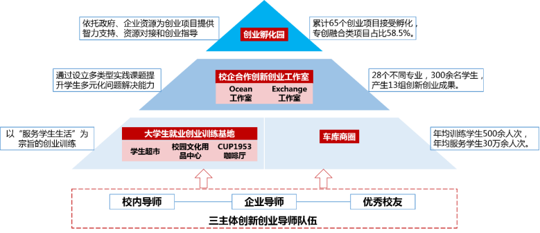 学校成立创新创业教育学院并统筹资源建设了从宏观到围观多层次产学合作机制。
