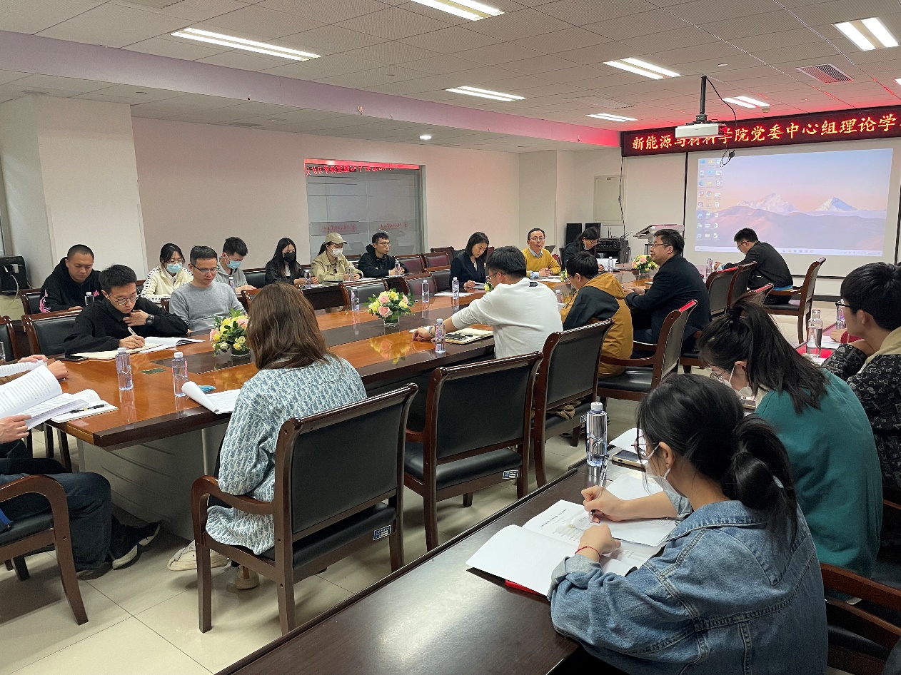3月30日下午,新能源与材料学院党委中心组理论学习扩大会在主楼A417召开,专题学习全国两会精神。会议由党委书记叶海木主持,党委中心组及各党支部书记参加学习。