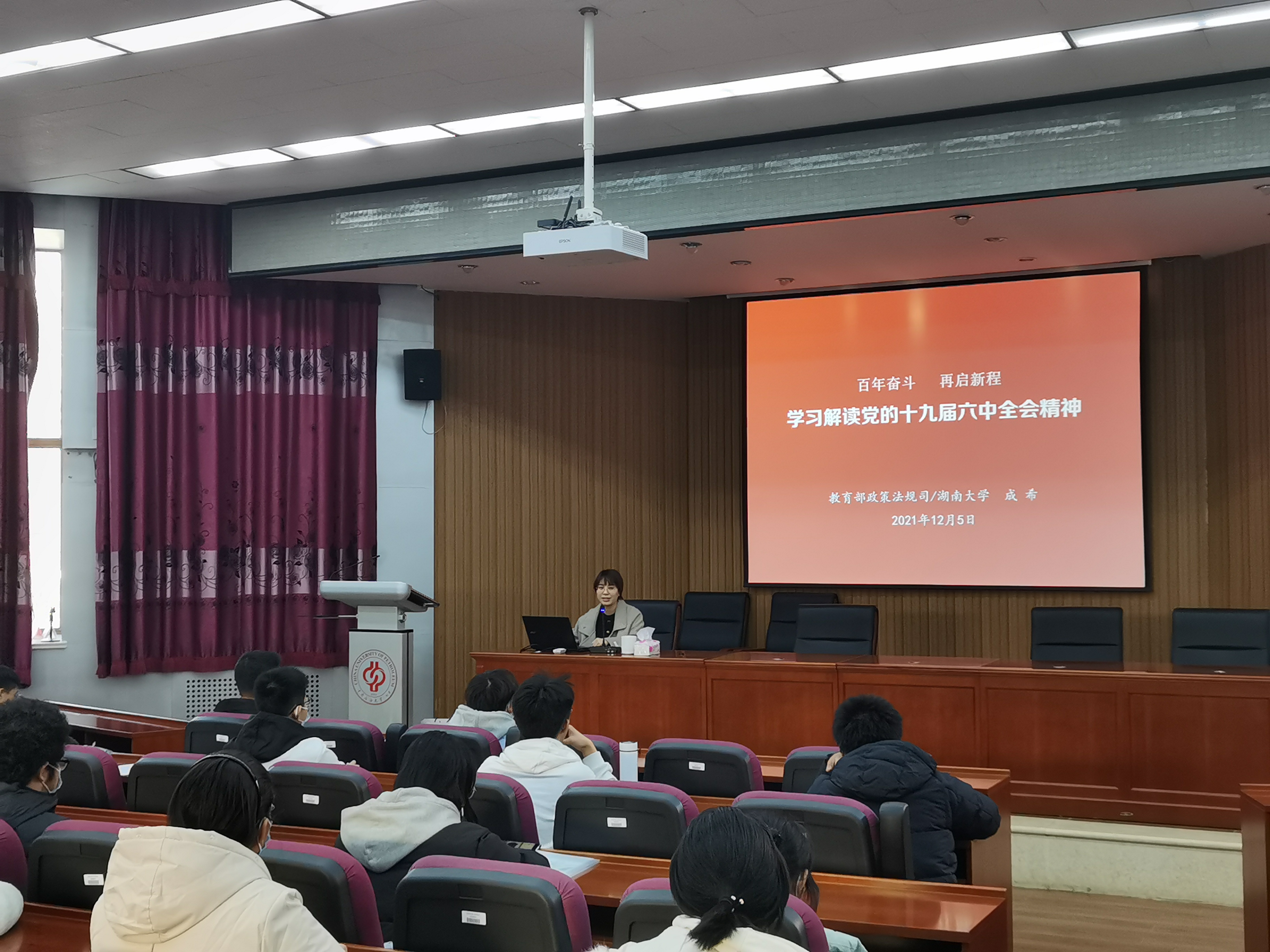 成希以“百年奋斗·再启新程——学习解读党的十九届六中全会精神”为题,重点围绕“中国共产党的百年奋斗伟大成就”、“百年奋斗的历史经验”和“精神财富以及历史意义和新时代的中国共产党”三个方面,生动形象地阐述了“中国共产党是什么,要做什么”这个根本问题。她号召学生勿忘昨天的苦难辉煌,无愧今天的使命担当,不负明天的伟大梦想;要以史为鉴、开创未来,埋头苦干、勇毅前行,为实现第二个百年奋斗目标、实现中华民族伟大复兴的中国梦而不懈奋斗。