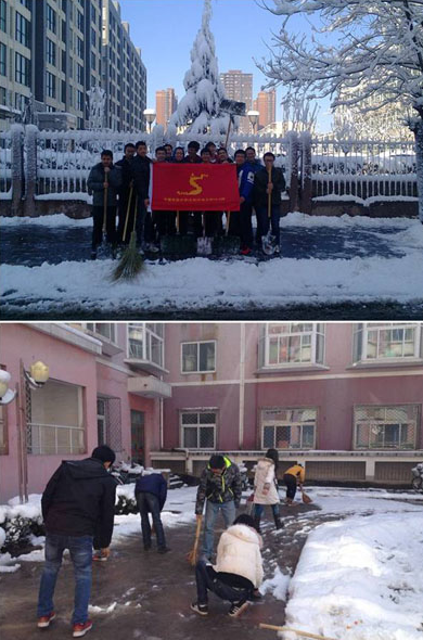 2013年3月20日上午,石油工程学院学生开展“学雷锋义务扫雪”活动。