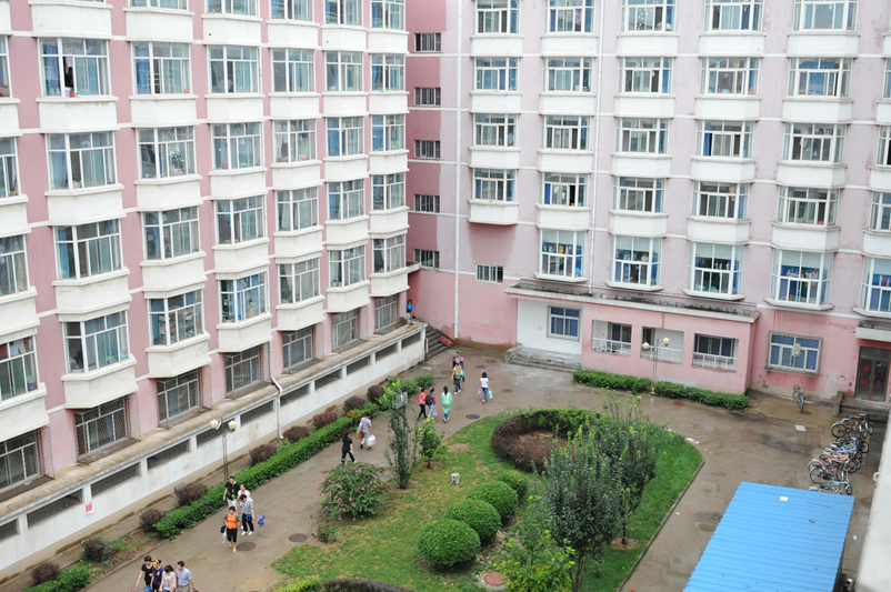 楼房与绿荫交错,阳光伴花香洒落,微风轻轻将房门推开,屋内是舍友温暖的笑脸。