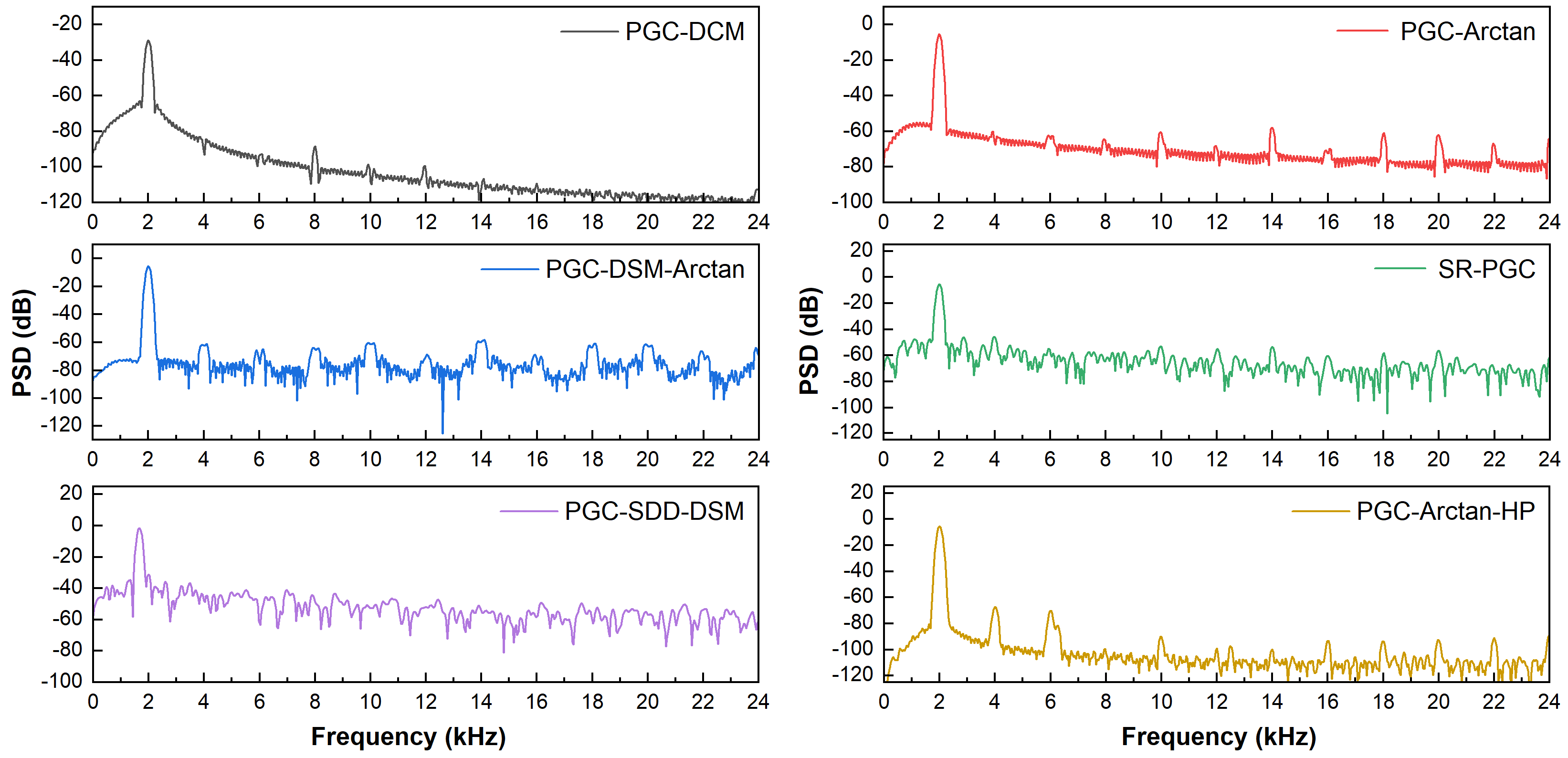 光纤干涉传感器(FOIS)具有灵敏度高、抗干扰能力强、测量范围大等特点,已成为检波器、水听器和光纤陀螺仪等精密测量系统的传感部分,被广泛应用于管道监测、油气勘探和水声探测等领域。而光纤干涉传感器获取的光强信号需要经过一定的解调处理才能得到待测相移信号,相位生成载波(PGC)技术由于分辨率高、线性度好等优势,成为被广泛使用的解调技术。
