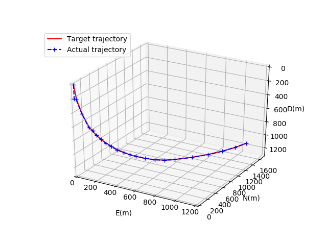 可以看出,在收敛后两模型的跟踪效果基本一致,均能完成对预设井眼轨道的跟踪任务。