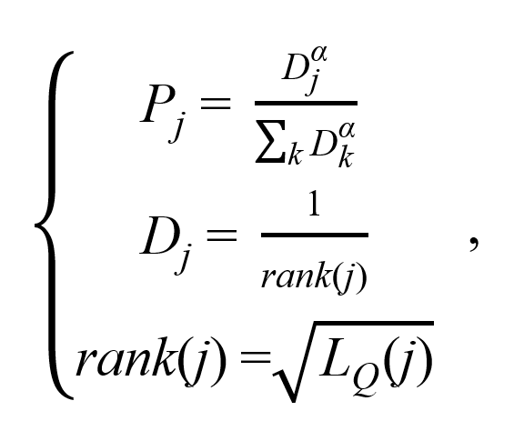 在本文所设计的基于优先级的经验回放机制中,经验的抽样并非随机从经验池中进行抽取,经验抽样的概率分布如下所示: