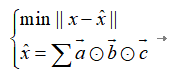 Step2,张量分解。本文采用连续rank-1的CP分解方法,即每次分解用秩为1的张量来拟合原始张量,然后将原始张量与拟合后的张量做差得到剩余张量,对剩余张量再继续执行秩为1的CP分解,直到达到迭代次数或连续2次分解误差变化不大即可停止,其中误差计算如下所示:
