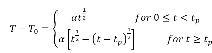 稳态激光辐照会导致油页岩表面温度升高,将油页岩看作理想的半无限传导介质,引入热学参数矫正因子a,建立了油页岩表面温度T的演变方程为: