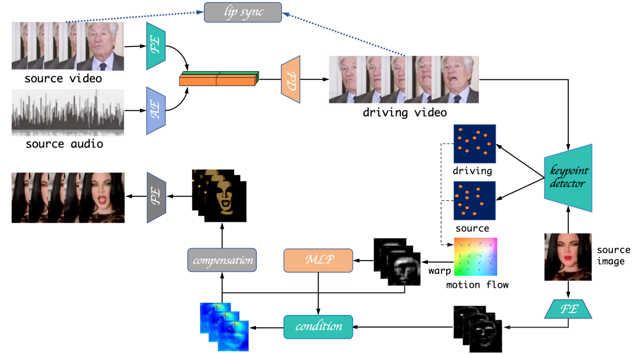 本研究对当前的说话人(talking head)生成方法进行了重新审视,针对唇形同步问题和面部补偿问题进行了深入研究。通过引入唇形同步模块对输出的说话人的音频效果进行约束,同时提出了中间人选择机制,来保证输出最终说话人与源说话人的身份一致性和结构相似性,同时还提出了全局面部特征记忆库,以解决之前生成的面部表情的缺陷问题。实验结果表明,我们的框架可以创建one-shot说话人肖像,同时具备精确的唇部动作和更高的保真度。本研究为后续对数字人领域的进一步研究提供了参考和对照。