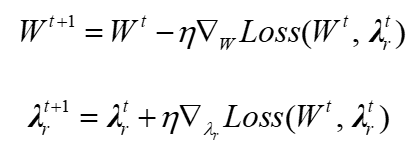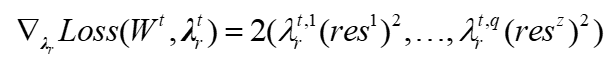 在机理模型的所有参数都是常数的情况下,通过网络反向传播,以计算损失函数对LSTM网络的权重和残差的权重的梯度。如下式所示,所提出的训练方法的基本思想是在具有较大损失的区域中最大化相对于自适应权重的损失,并最小化相对于网络权重的损失。