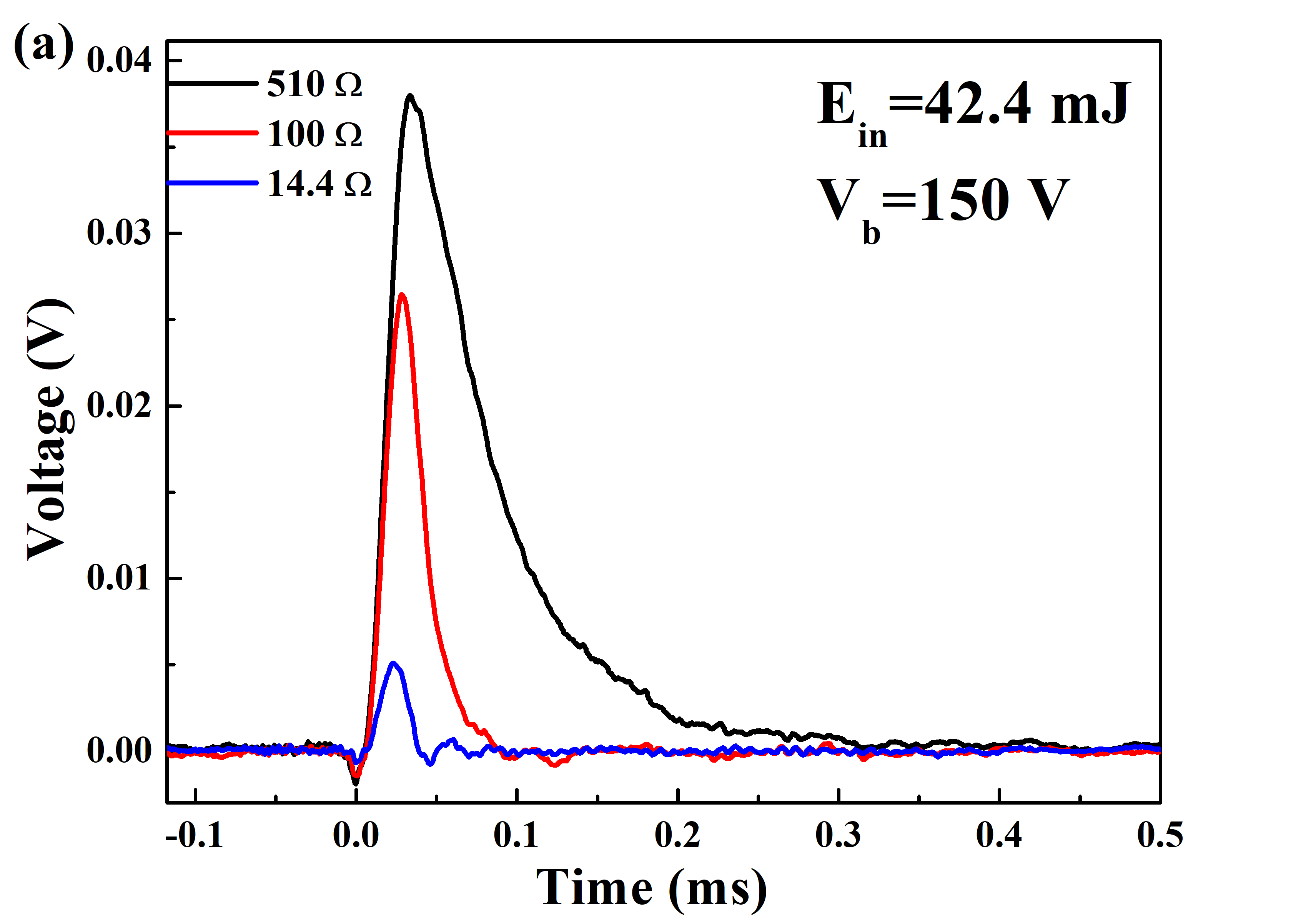 本文提出了一种检测纳秒(ns)脉冲激光能量的方法。偏置电压(Vb)和激光能量(Ein)对食盐的激光感生电压(LIV)信号幅值(Vp)影响较大,Vp随Vb和Ein的增大而增大,信号响应时间约为150µs。受阻抗效应的影响,LIV信号的响应速度和峰值Vp随着负载(R)的减小而增大。当R=100 Ω时,LIV的响应时间与纳秒脉冲激光相似(⁓20 ns),完全受激光脉冲持续时间的限制。该研究表明,食盐的LIV响应具有实时超快单脉冲激光检测的潜力。