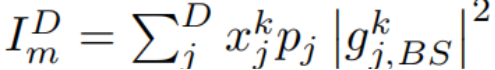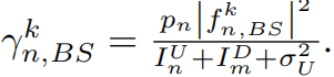 根据上述描述,多个请求用户可以与选择k信道的原始蜂窝用户来重用同一信道。蜂窝用户在基站侧的信干燥比(SINR)为: