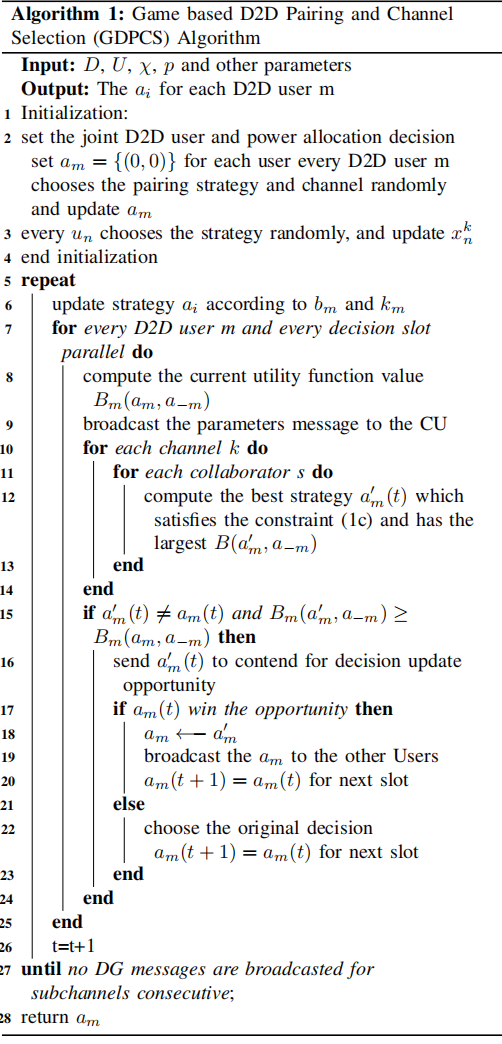 论文题目:A Potential Game Approach for D2D Pairing and Channel Selection for NOMA-enabled D2D Cellular Networks