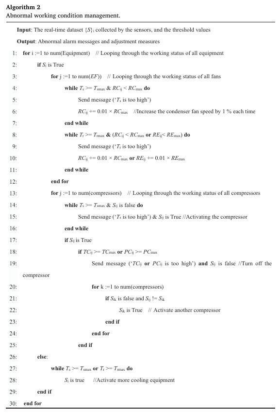 建立了数字孪生监控模型,结合数字孪生连接层中的硬件单元,对冷却系统的工作状态进行实时监控,捕捉异常并进行应急管理。其运行逻辑如算法1和算法2所示。
