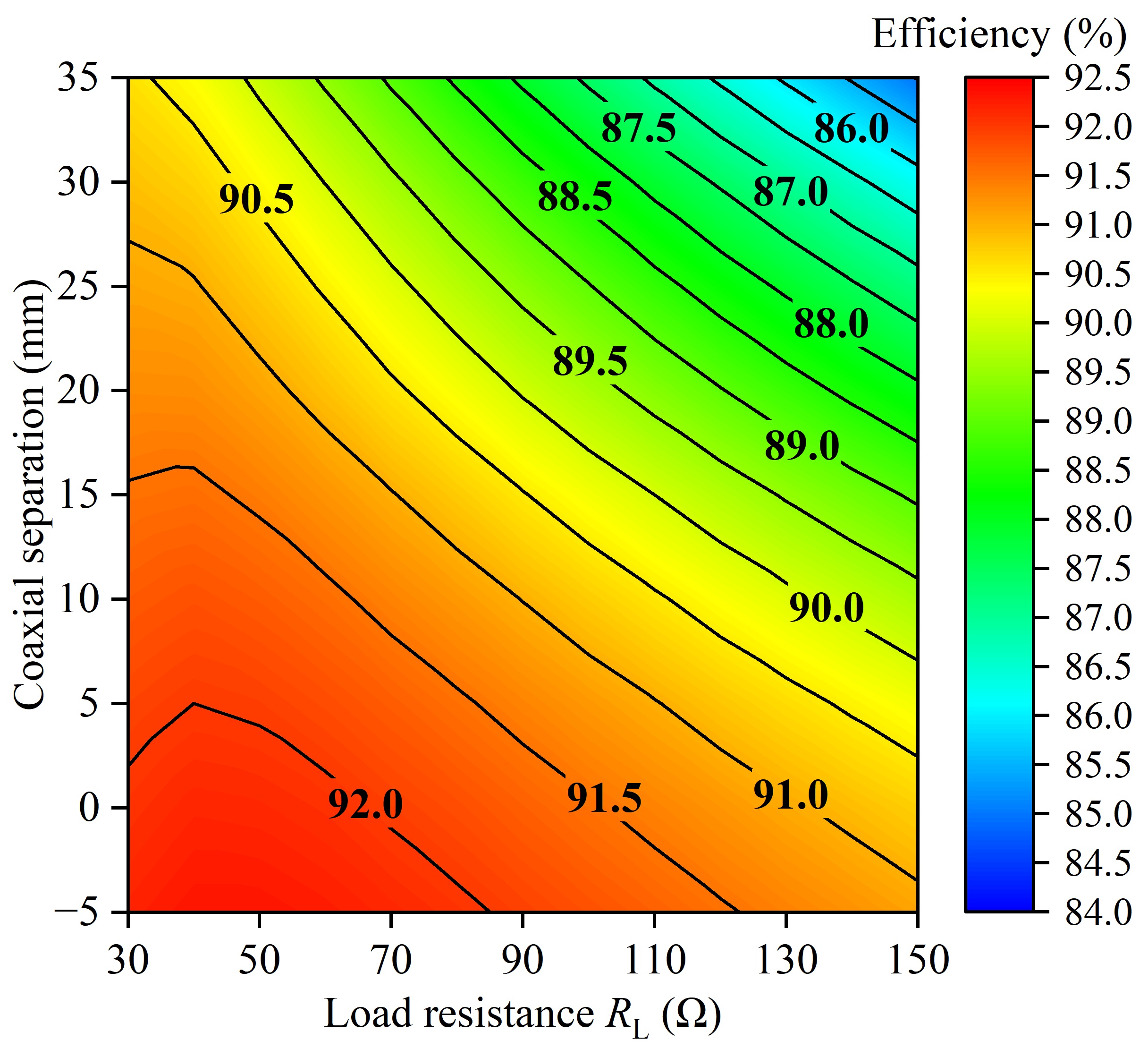 图6 磁耦合机构轴向偏移情况下完整系统的效率变化曲线