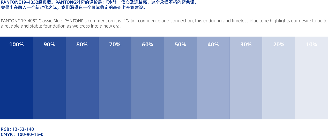浅蓝辅助色一般用于电子海报、ppt等数字艺术设计背景色,少数情况也可用作元素填充色。特殊场合可使用专金、专银等印烫专色用于工艺品、高档物料的制作。