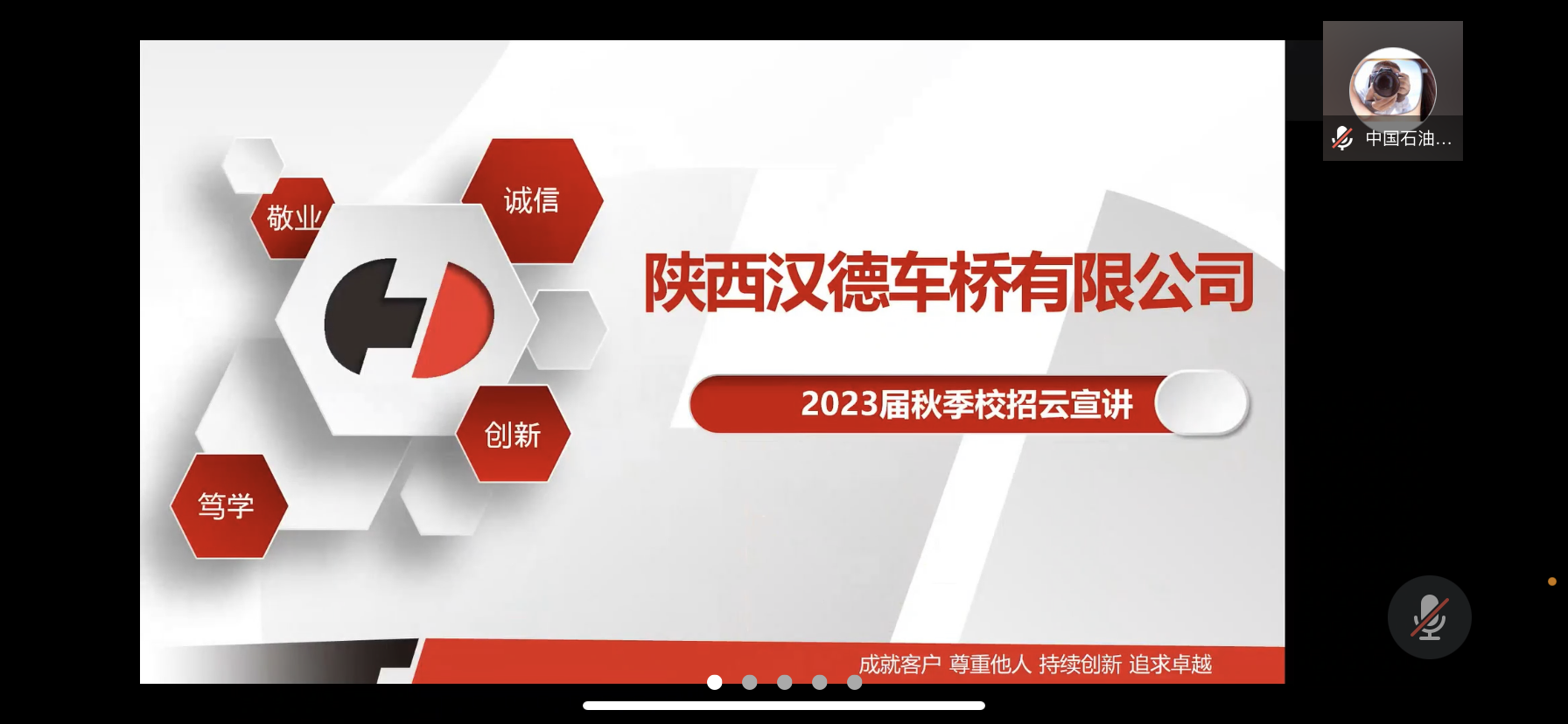 10月25日,学院联系陕西汉德车桥有限公司组织开展线上专场招聘宣讲会,60余名本研毕业生参会。会议由学院就业联系人张乐主持。
