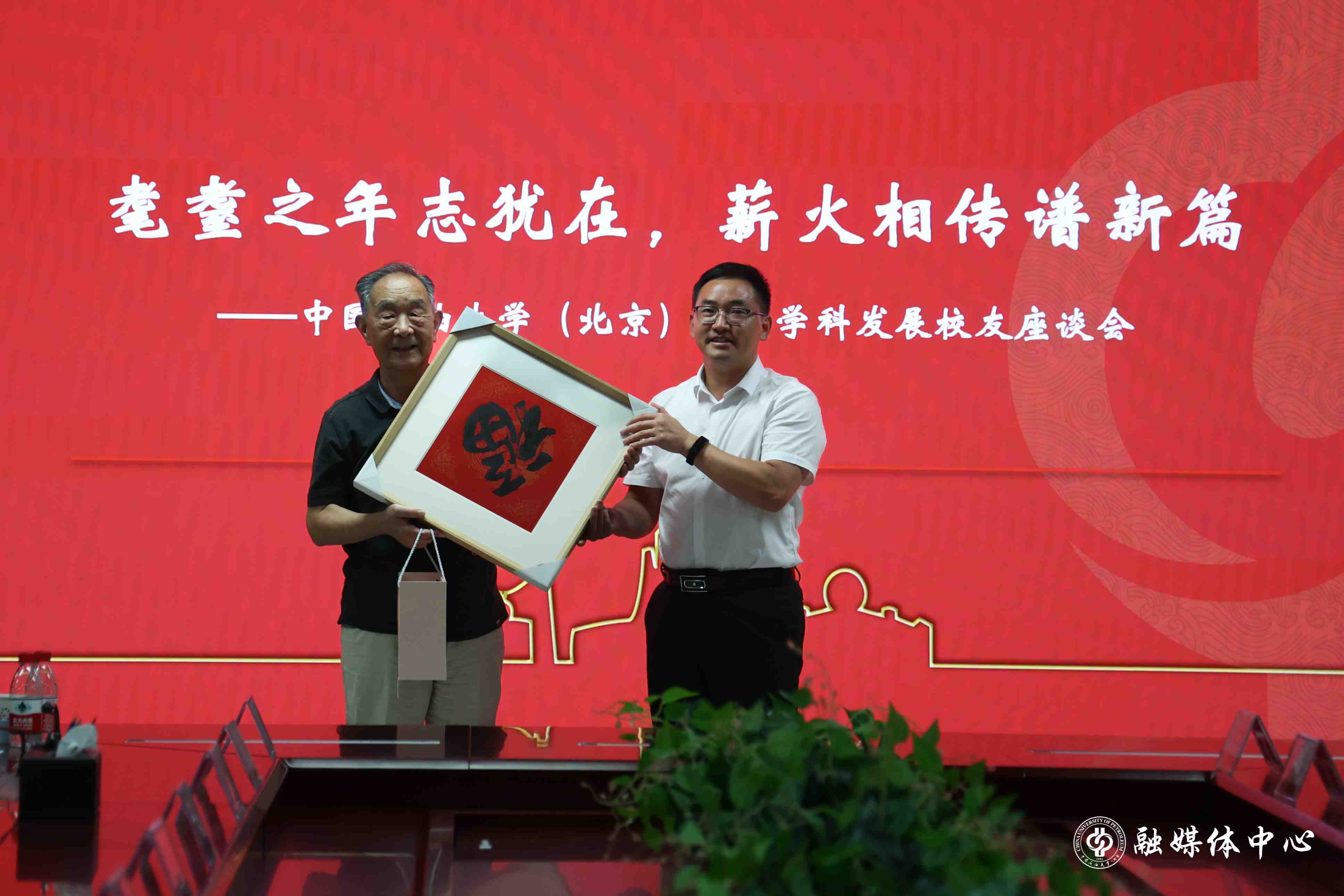 座谈会当天适逢袁璞教授90寿辰,蒲俊霖和中国石油大学(华东)控制学院副院长陈鸿龙代表两个学校为袁璞教授赠送了礼物,向他为中石大控制学科发展作出的卓越贡献表示崇高敬意。在讲话中,蒲俊霖高度肯定了校友们在捐资助学、校企合作等方面为母校作出的贡献。他表示,中石大控制学科有着光荣的历史,以袁璞教授为代表的老一辈中石大人用奋斗和智慧为学校和学科的发展奠定了坚实的基础。当前,大数据、人工智能等新一代信息技术不断突破,能源行业智能化发展、数字化转型为学校提供了新的机遇,希望广大校友继续关心、支持学校的改革发展,凝心聚力,携手开创学校高质量发展新格局。