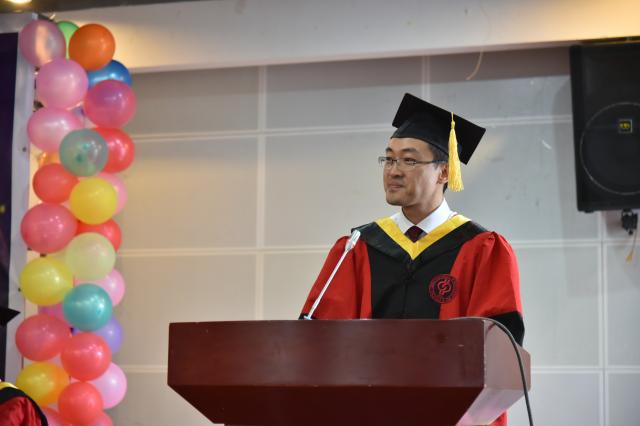 放眼未来,今后你们也许在其它高校深造,也许在企事业单位工作,也许在家准备下一次研究生考试。无论所供何职、身处何处,我相信你们将从更多人的身上学到在母校没有学过的前沿技术、从更多人身上感受在母校未曾见过的高尚品格、从更多人那里聆听在母校从未听过的远大抱负。我作为你们的院长,愿你们在若干年后,返回母校之时,像王强校友和我们信息学院三个专业已经毕业的5000余名优秀毕业生一样,回到母校,告诉曾经的老师们,你在离开母校后的所学、所见、所闻;回来和我们分享你的故事:你如何成功,又因何失败,又如何从失败走向成功。