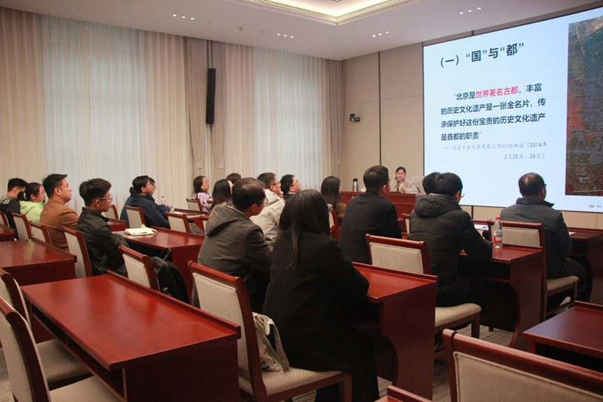 在专题学习环节,北京市委党校副教授董亭月围绕首都规划和国际科技创新中心建设做辅导报告。报告系统梳理了习近平总书记关于首都规划建设的重要论述,通过鲜活案例和详实数据,深入解读了新时代首都“四个中心”战略定位与“一核一城三带两区”总体布局,重点介绍了北京国际科创中心建设的主要进展和成效。