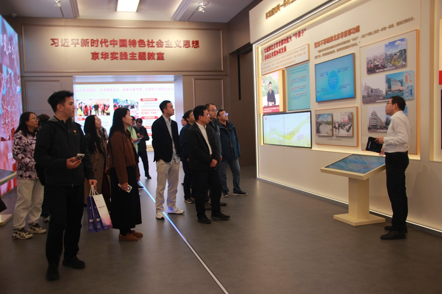 在现场教学环节,大家步入“京华实践”主题教室,逐一参观八个核心展陈单元与两个特色专区,沉浸式感受首都高质量发展的生动实践。参观过程中,大家结合教学科研实际,重点学习了北京国际科创中心建设与发展成果,了解首都全域人工智能产业布局、关键核心技术突破与应用场景落地等前沿动态。