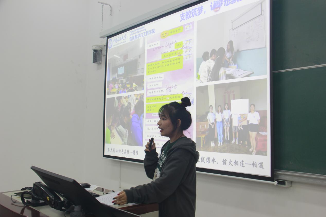 为弘扬志愿服务精神,分享志愿活动故事,加强志愿实践意识,10月11日,信息科学与工程学院在第三教学楼307教室举办“青春心向党 奋进新征程”第二期主题团课——志愿精神专题宣讲。学院青年志愿者协会指导老师李佳潞、学院2019级优秀志愿者马婉蓉、2020级优秀志愿者陈欣岩、杨淑鑫及全体大一新生参与会议。