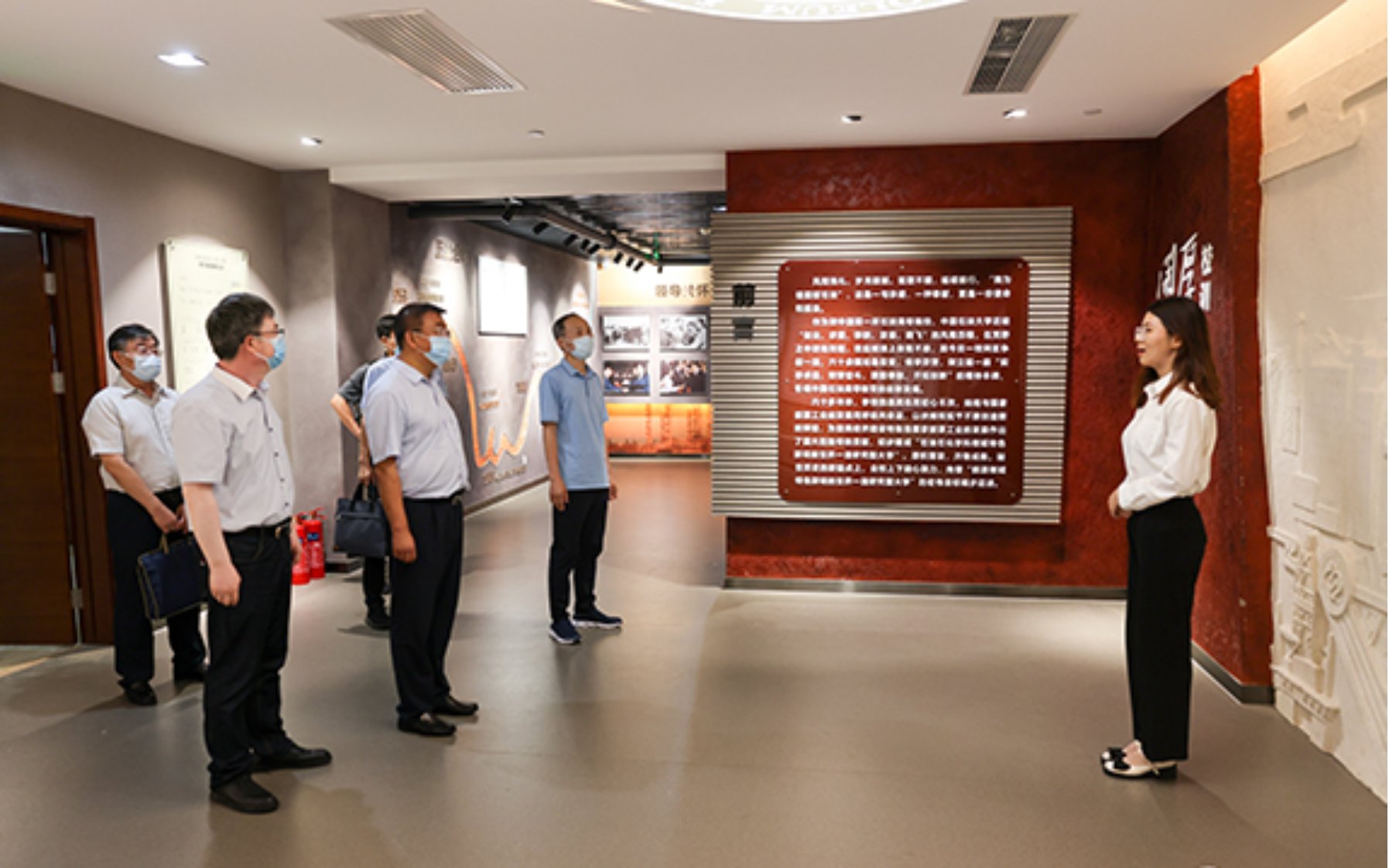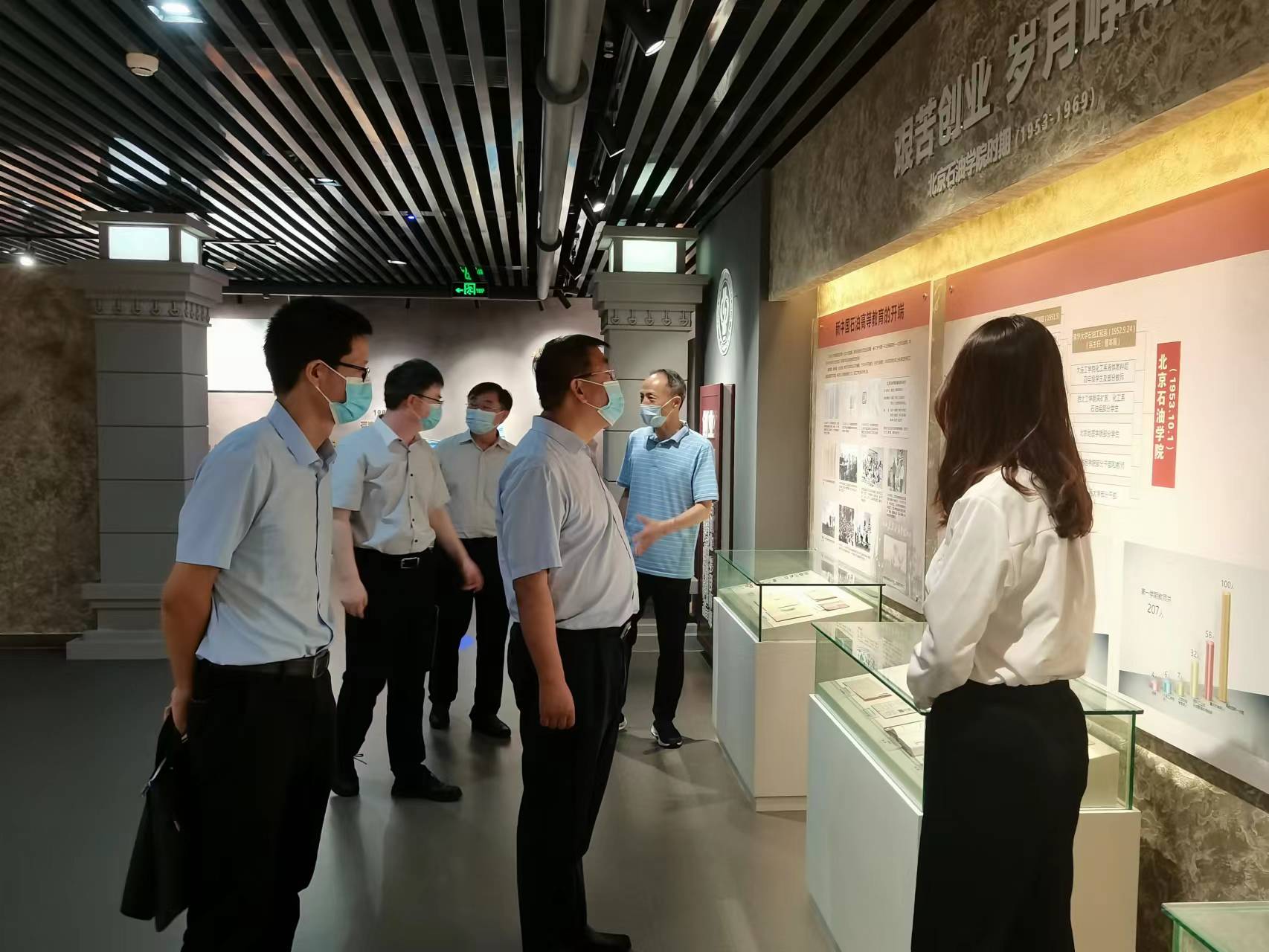 7月18日下午,克拉玛依市委常委、市委教育工委书记冯述江一行在中国石油大学(北京)副校长鲍志东,副校长、克拉玛依校区党委书记、校长梁永图陪同下参观了校史馆。