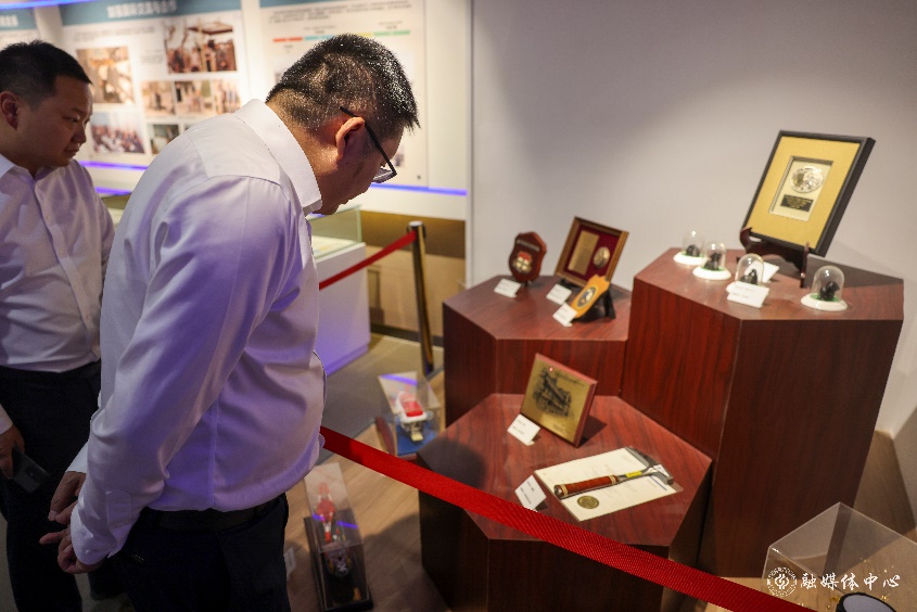 参观校史馆过程中,档案馆张赢今讲解了学校近70年的办学历程及光辉成就。崔同富详细了解了学校取得的辉煌办学成就,以及学校培养的一批批优秀校友,认为学校始终坚持服务区域经济社会发展,在产学协作、社会服务方面发挥了行业特色大学的重要作用。