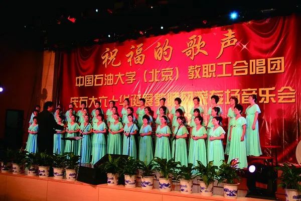 当时光走入2013年10月,中国石油大学迎来建校六十周年,10月2日,学校在体育馆举行庆祝大会。诸多杰出校友和支持学校发展的社会各界朋友齐聚在中石大的校园,与一万五千余名中石大在校师生同庆母校华诞。联谊会上,校友师生以“梦”为主线准备整台节目,从创业梦,奋斗梦到石油梦、中国梦,全面生动展现学校的发展历程。北京石油学院文工团老团员们也再次登上了母校舞台。当年北京石油学院的“两枝花”,文工团和体训队的旗帜一起飘扬在会场,把老校友的记忆带回到那些青春绽放的时光,那些激情燃烧的岁月。