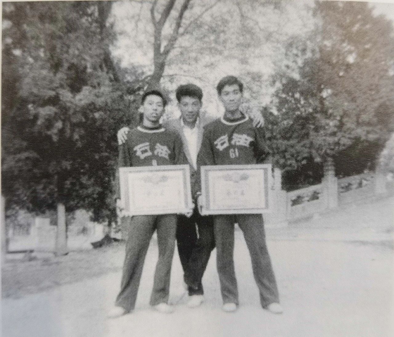 林伯成(左)、施云(中)、齐国光(右)获得健将级成绩后合影