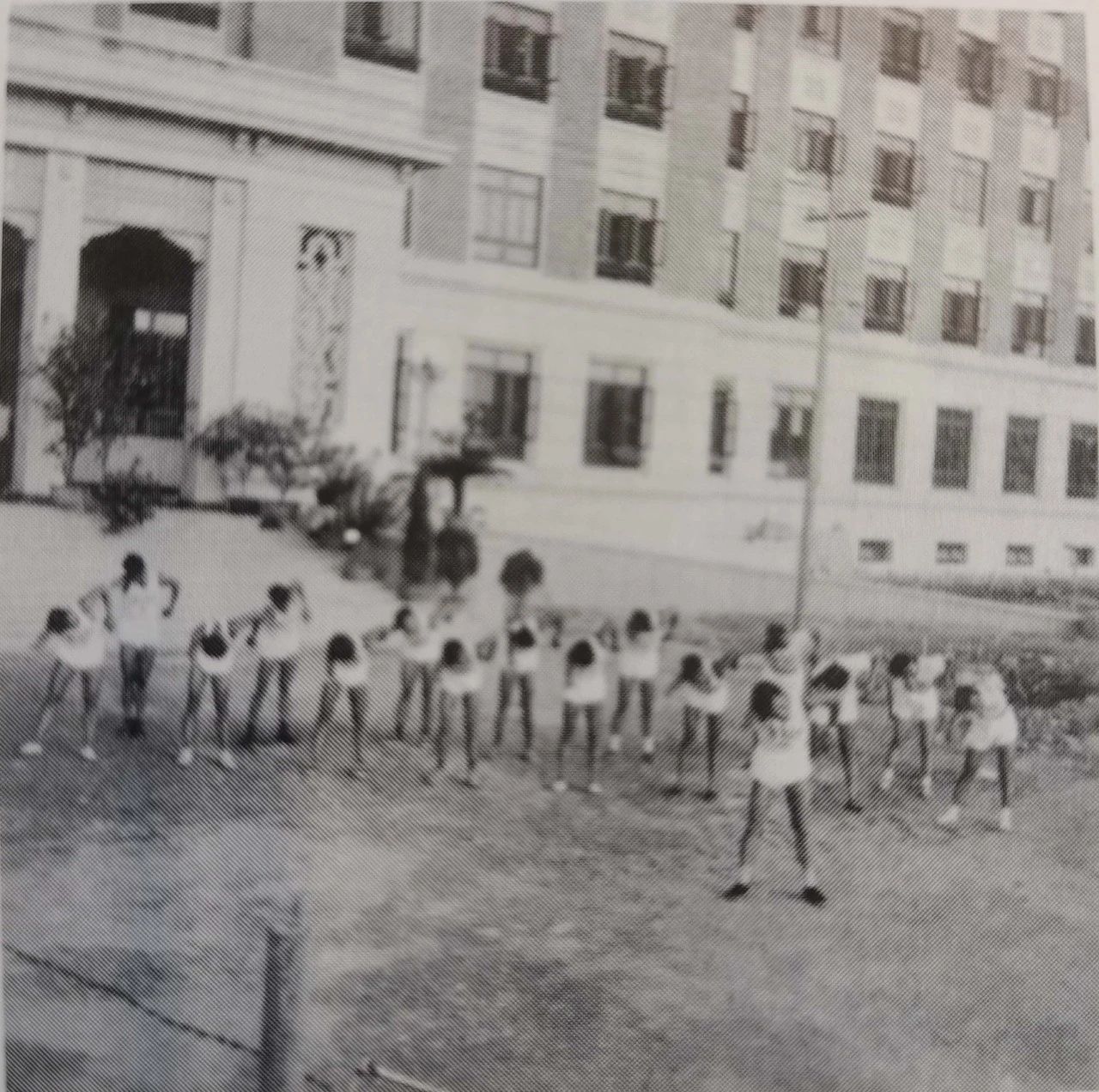 “要围着红旗操场跑,跑完了以后吃早饭。我们训练以军队为标准,非常严格,走步、排队都很齐,大家思想也都比较一致,服从命令听指挥。暑假寒假都训练,星期六星期日也训练。我们都争先恐后地去训练,都害怕自己落后。”(马燕丽)
