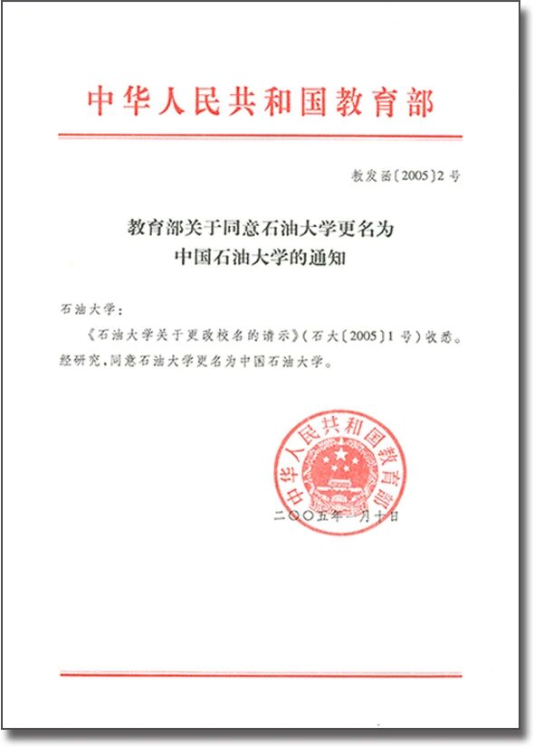 2005年1月10日,教育部同意石油大学更名为“中国石油大学”。