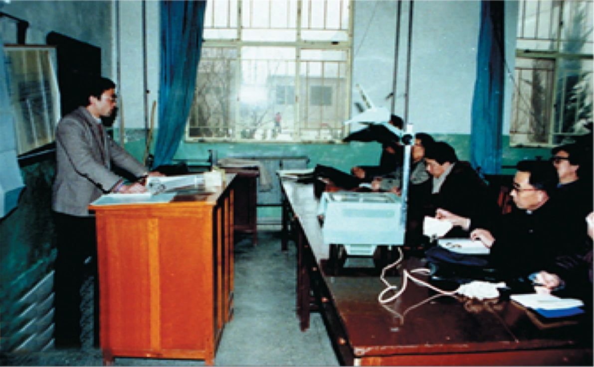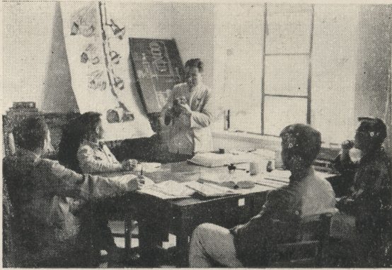 1958年,教研室主任杨光华和大家一起讨论学科专业建设