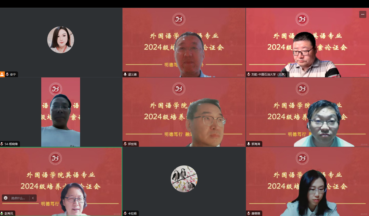 5月21日,外国语学院召开2024级英语专业(全球能源治理)培养方案专家论证会。马克思主义学院副院长刘乾、副教授杨卫东、杨晓锋,经济管理学院副教授郭海涛受邀出席,外国语学院院长赵秀凤、副院长逯义峰、英语专业党支部书记郑世高、系主任唐萌萌参加会议。