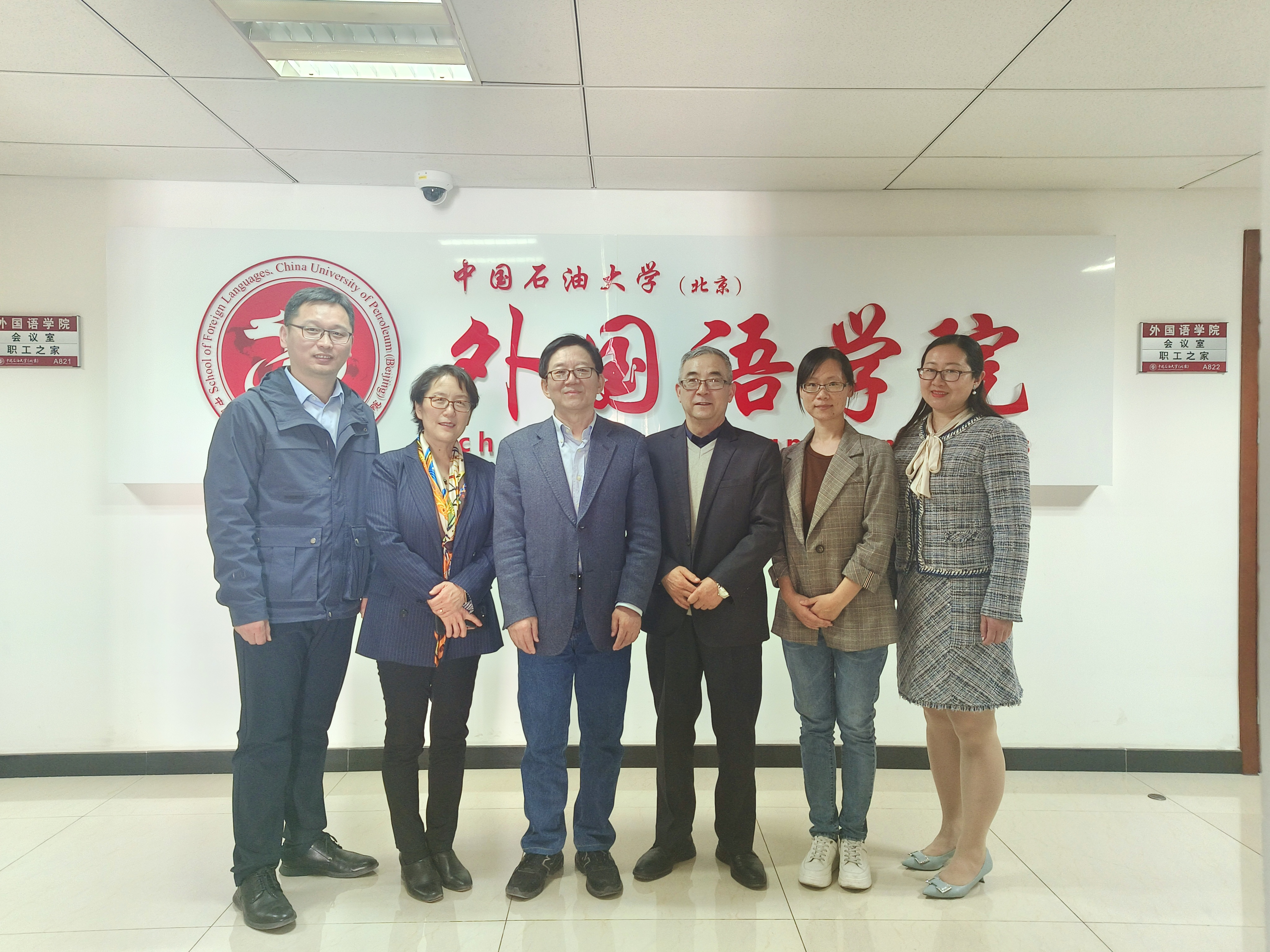讲座结束后,外国语学院院长赵秀凤教授、副院长崔亚霄副教授和特聘专家田海龙教授邀请吕世生教授到学院座谈,吕教授在石油科技翻译、中华学术外译等方面将对我院进行指导。