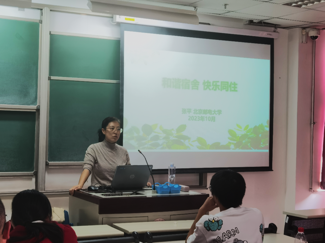 为常态化开展大学生心理健康教育,提高学生心理健康水平,营造和谐积极的宿舍人际关系,2023年10月25日下午,中国石油大学(北京)心理健康教育及咨询中心与外国语学院面向全校学生在第四教学楼409举办以“和谐宿舍,快乐同住”为主题的心理健康专题讲座。此次讲座由北京邮电大学学工部副部长兼心理素质教育中心主任张平老师主讲。