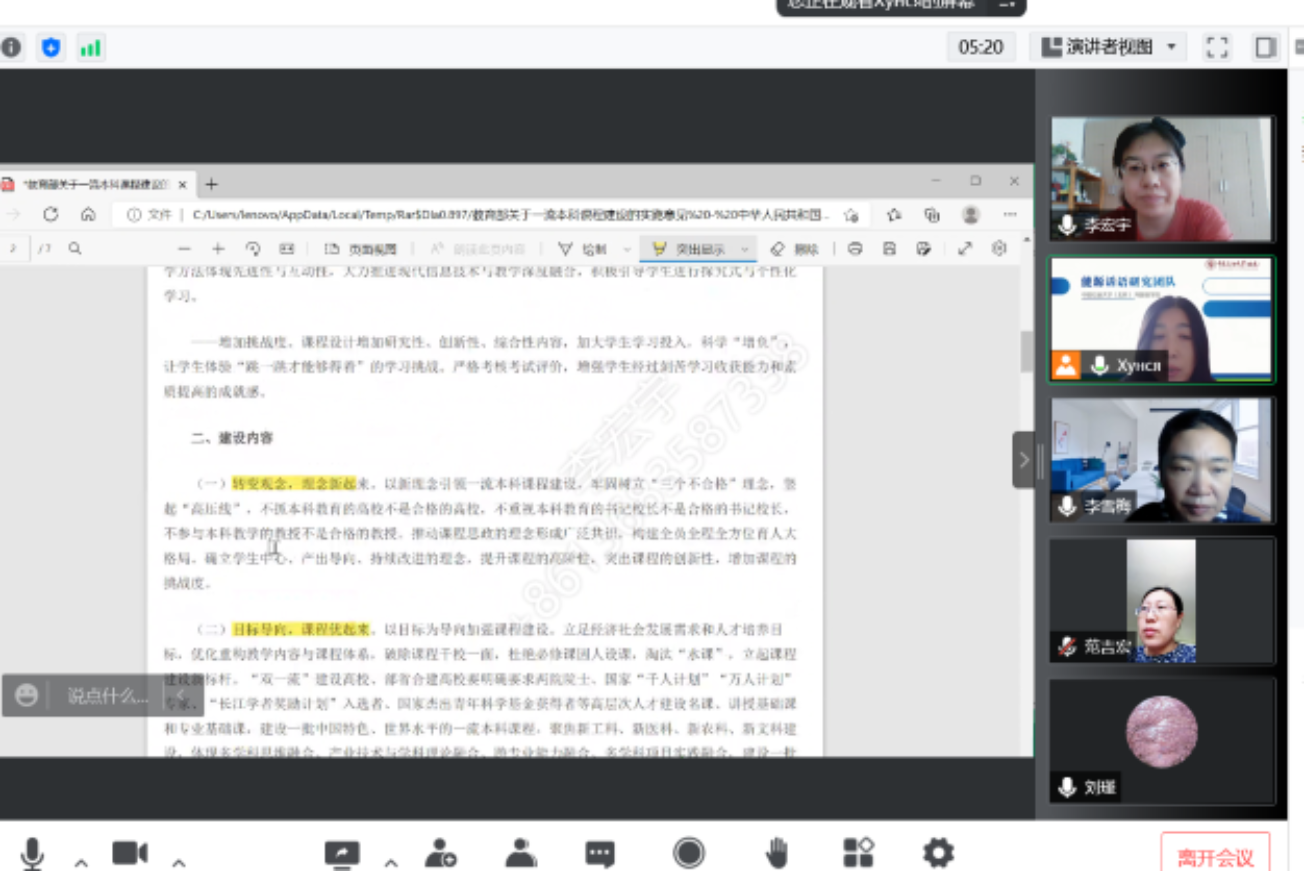 为持续建设和培育国家一流课程,2022年5月19日下午,外国语学院英语系、公共英语教学部、亚欧语教学部,分别开展了“国家一流课程建设”线上教学主题活动。