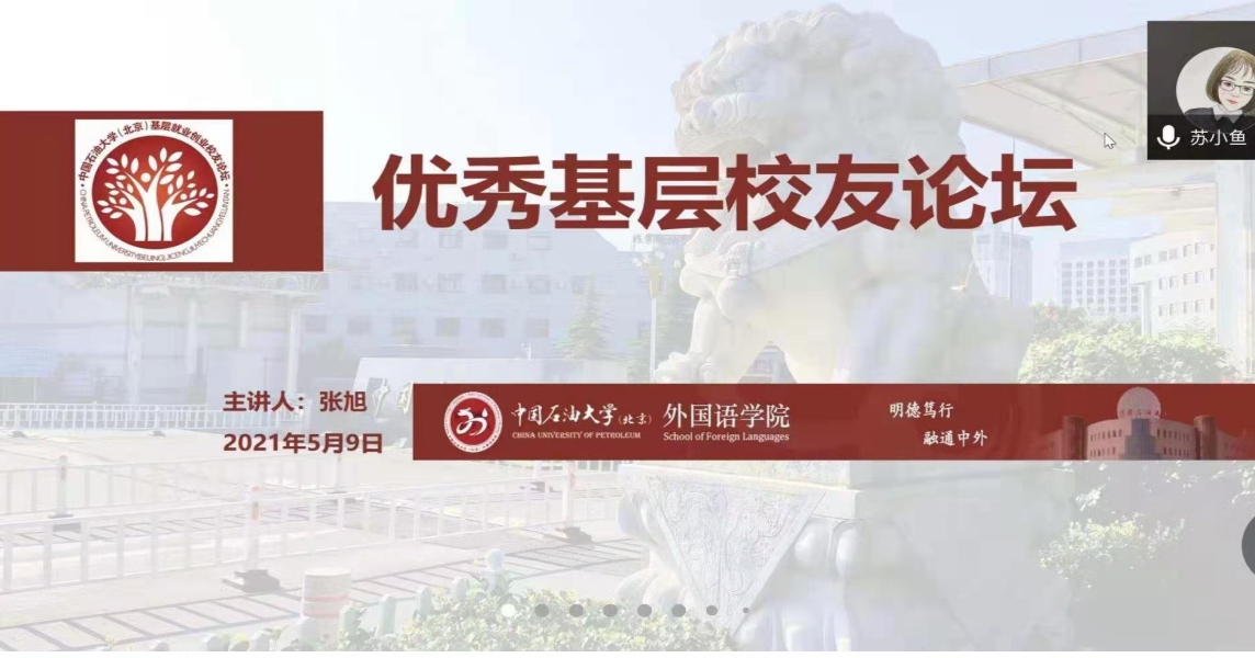5月9日,外国语学院采取线上线下相结合的方式成功举办优秀基层校友论坛。本次论坛由谌丛老师主持,并由外国语学院13级优秀基层校友张旭主讲。