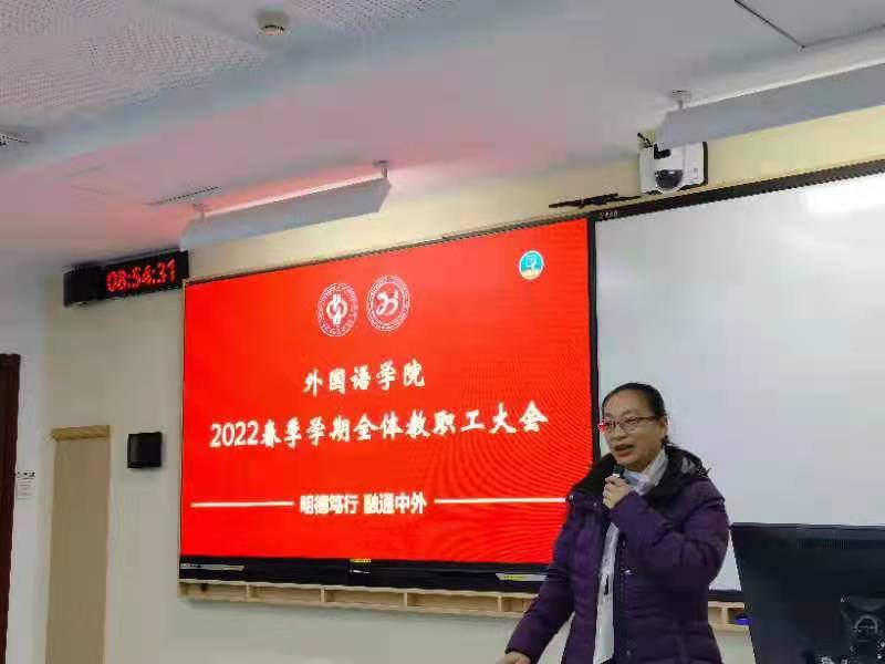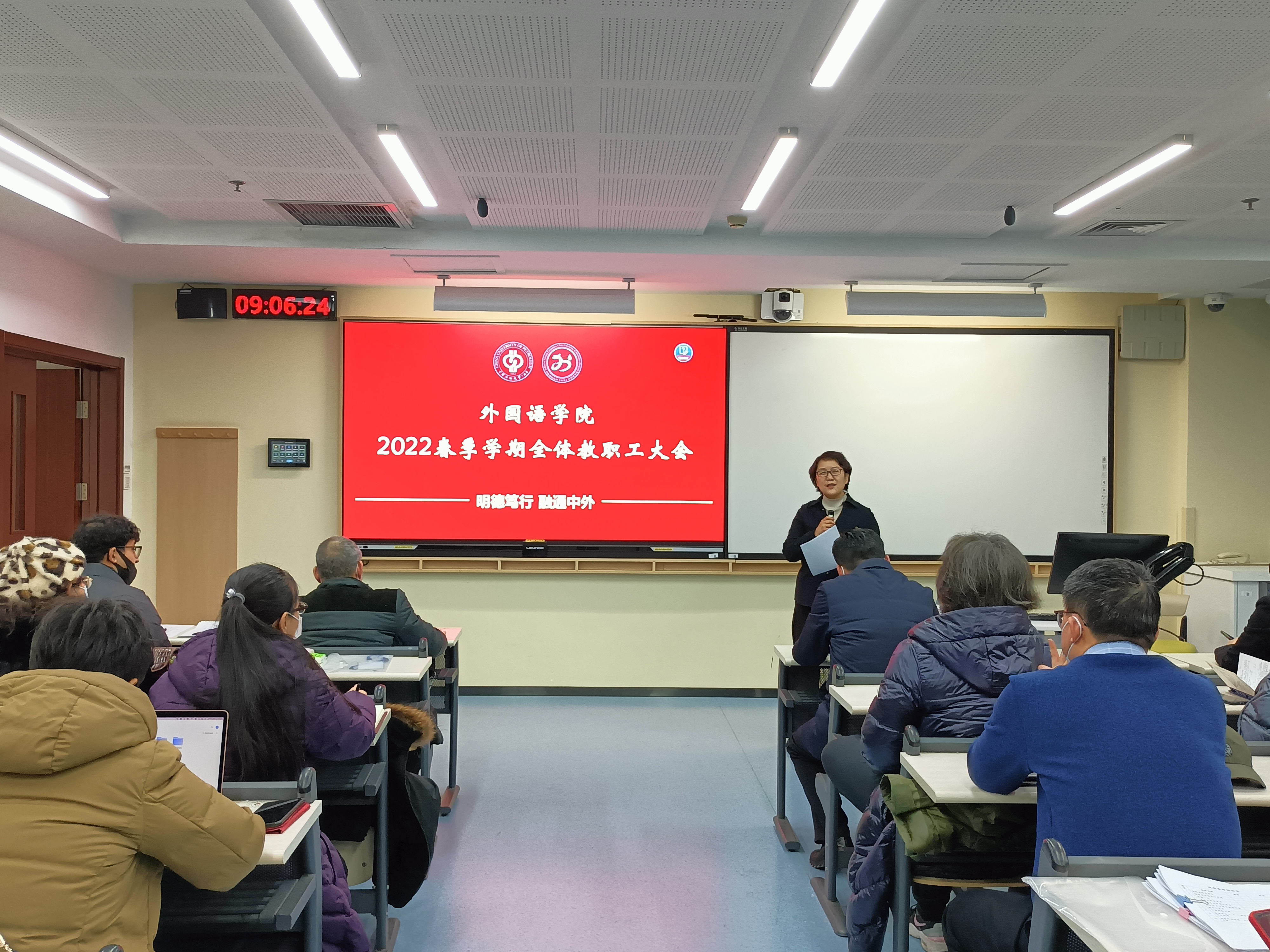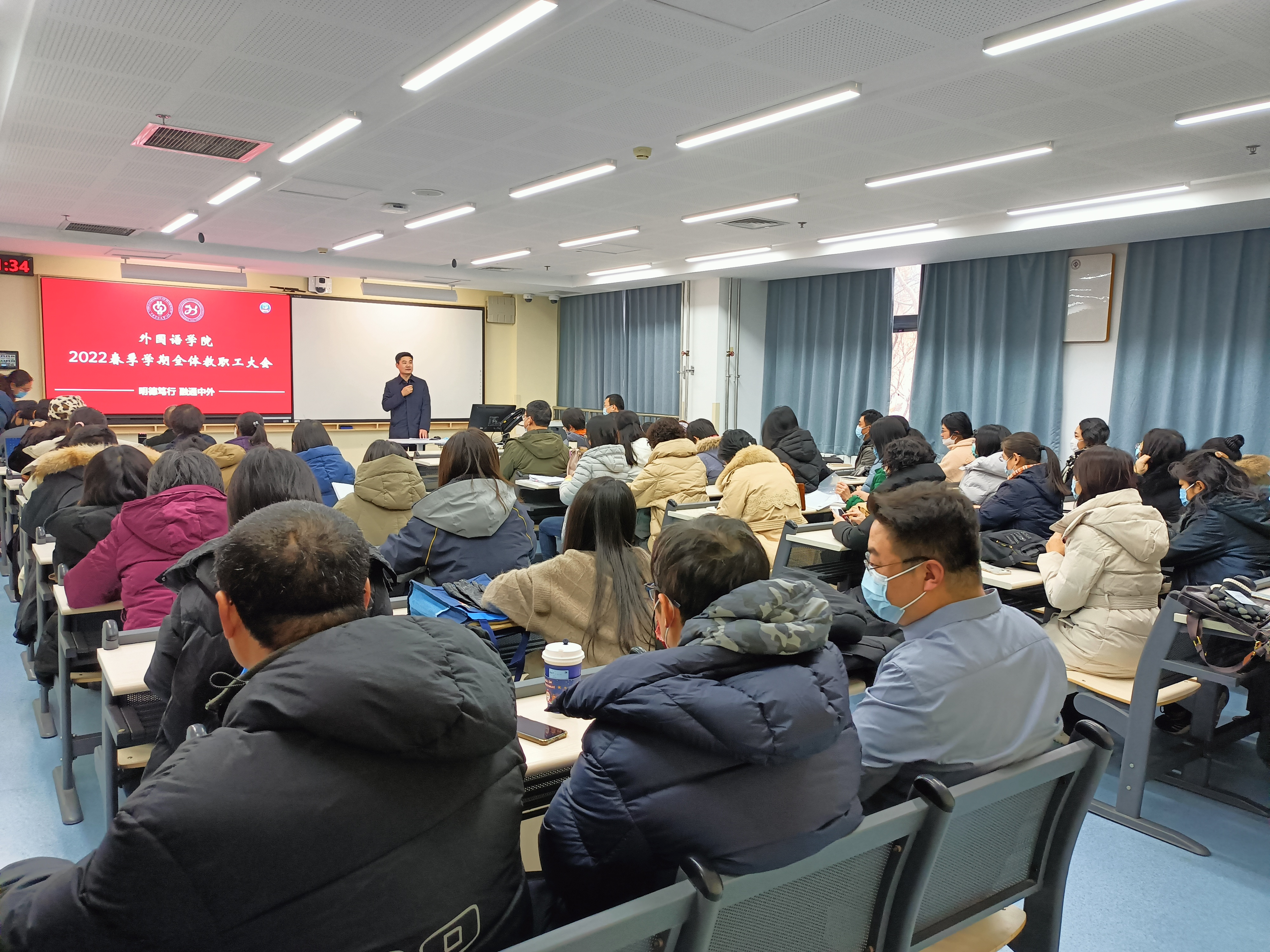 2月18日,外国语学院在四教206召开2021-2022学年春季学期开学初全体教职工大会,学院领导班子和全体教职员工参加本次会议。会议由学院党委书记李玉财主持。