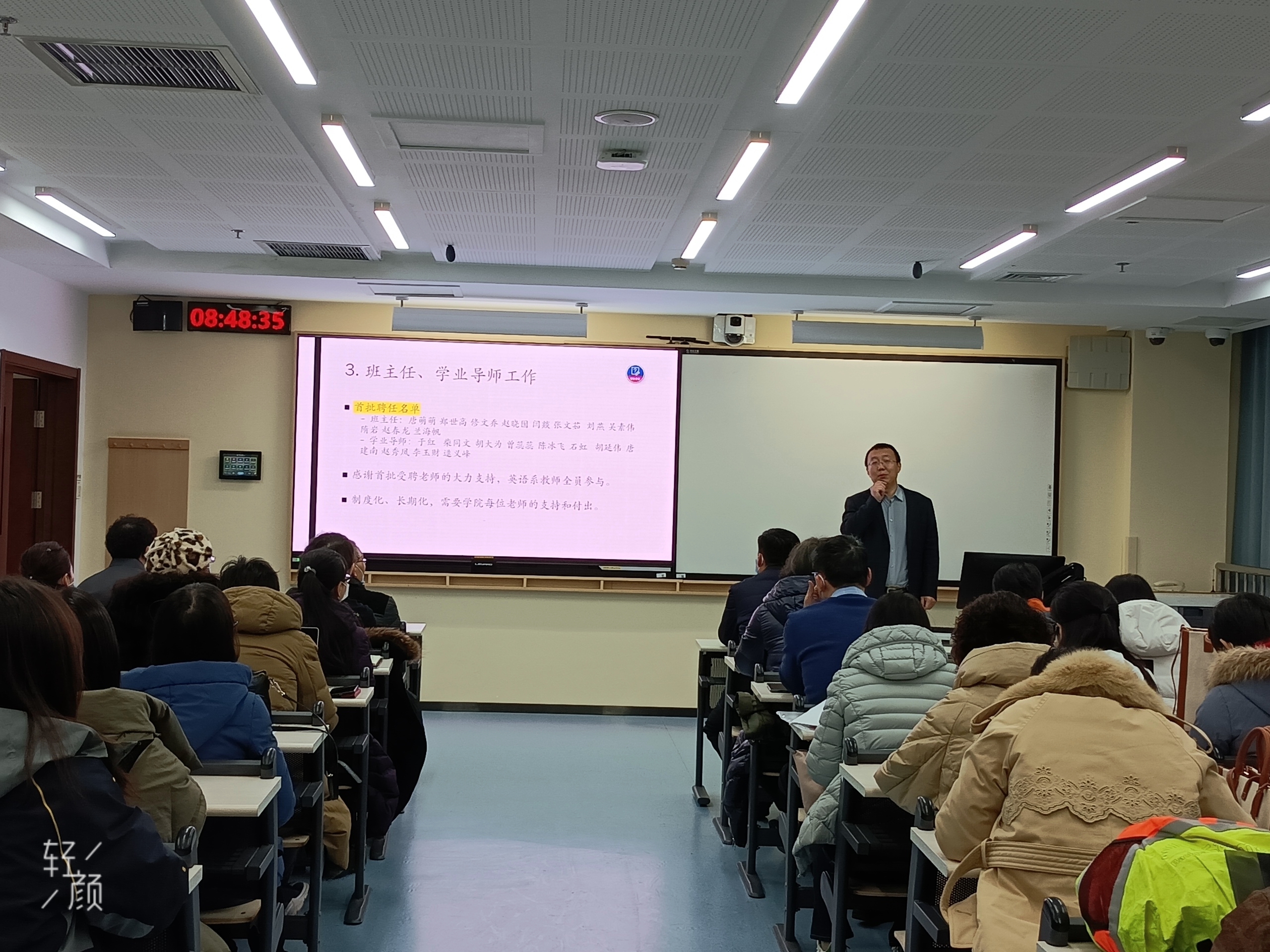 逯义峰副院长对开学初各项教学工作进行了全面部署,强调落实好冬奥会志愿者上课方案,就假期中启动的班主任和学业导师聘任工作进行了通报和说明,赵秀凤院长部署了本学期学院十项重点工作;李玉财书记通报了系部换届结果、2021年学院领导班子党史学习教育专题民主生活会的意见征集情况及整改措施。