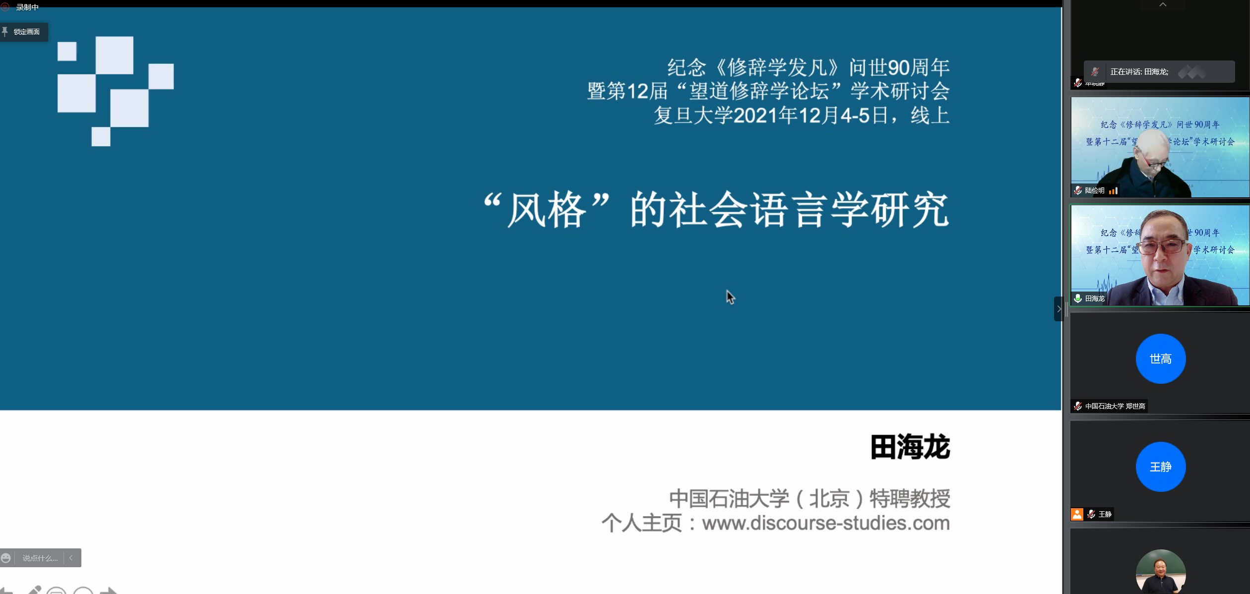田海龙教授应邀在第12届“望道修辞学论坛”学术研讨会做主旨发言
