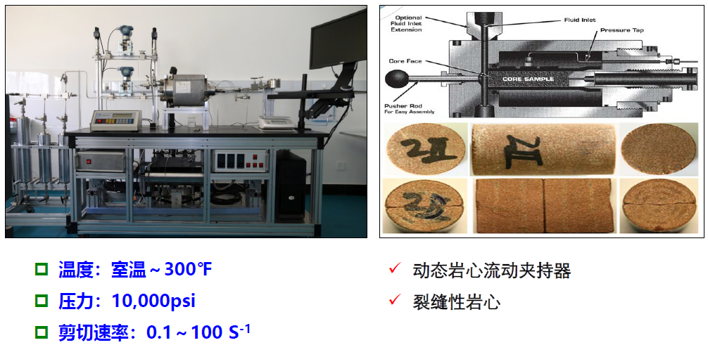 2.模拟储层温度、压力、不同液体剪切速率下,研究各种入井流体对储层的伤害、滤失、配伍性情况,注水及增产措施的伤害机理。